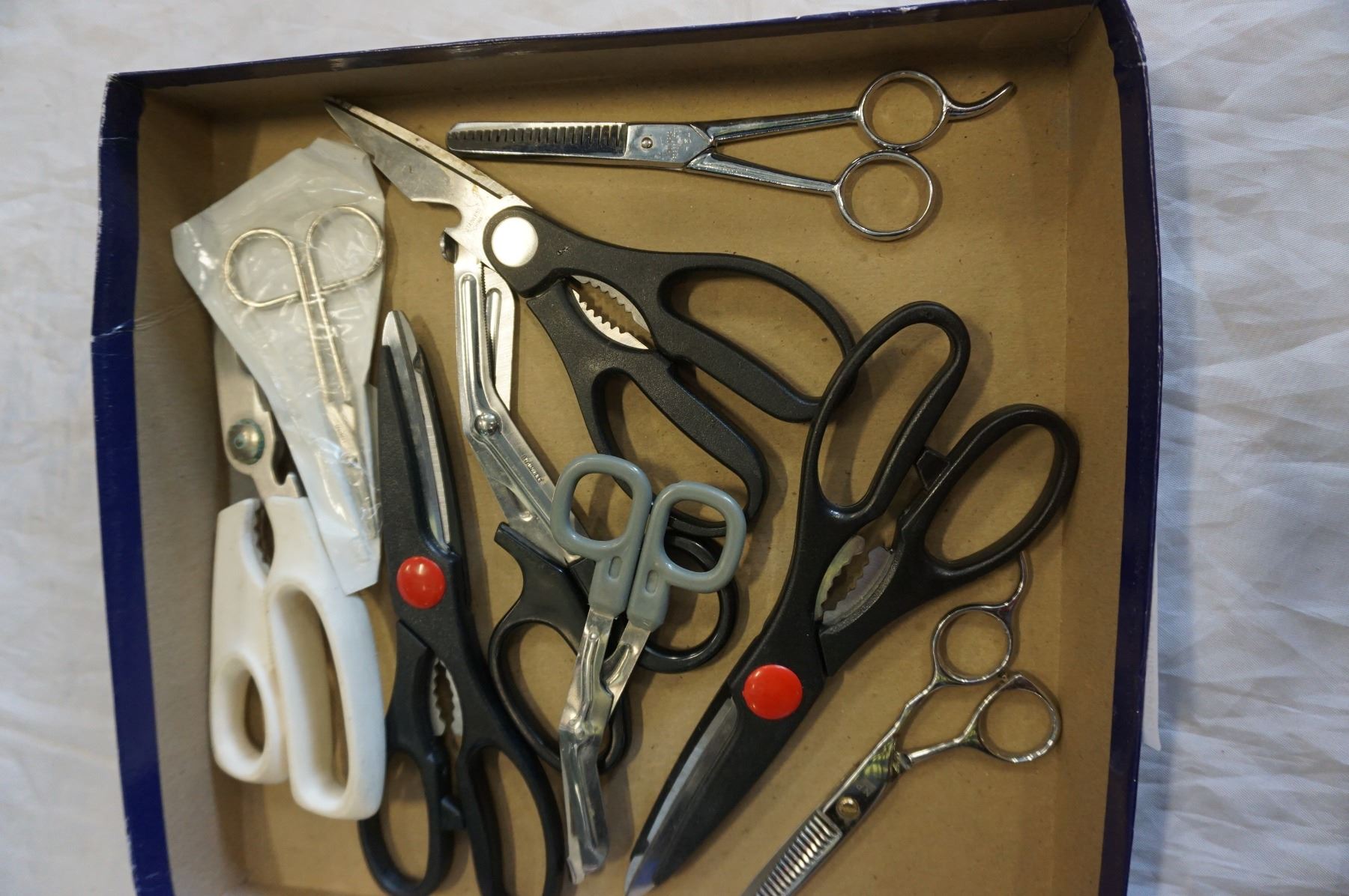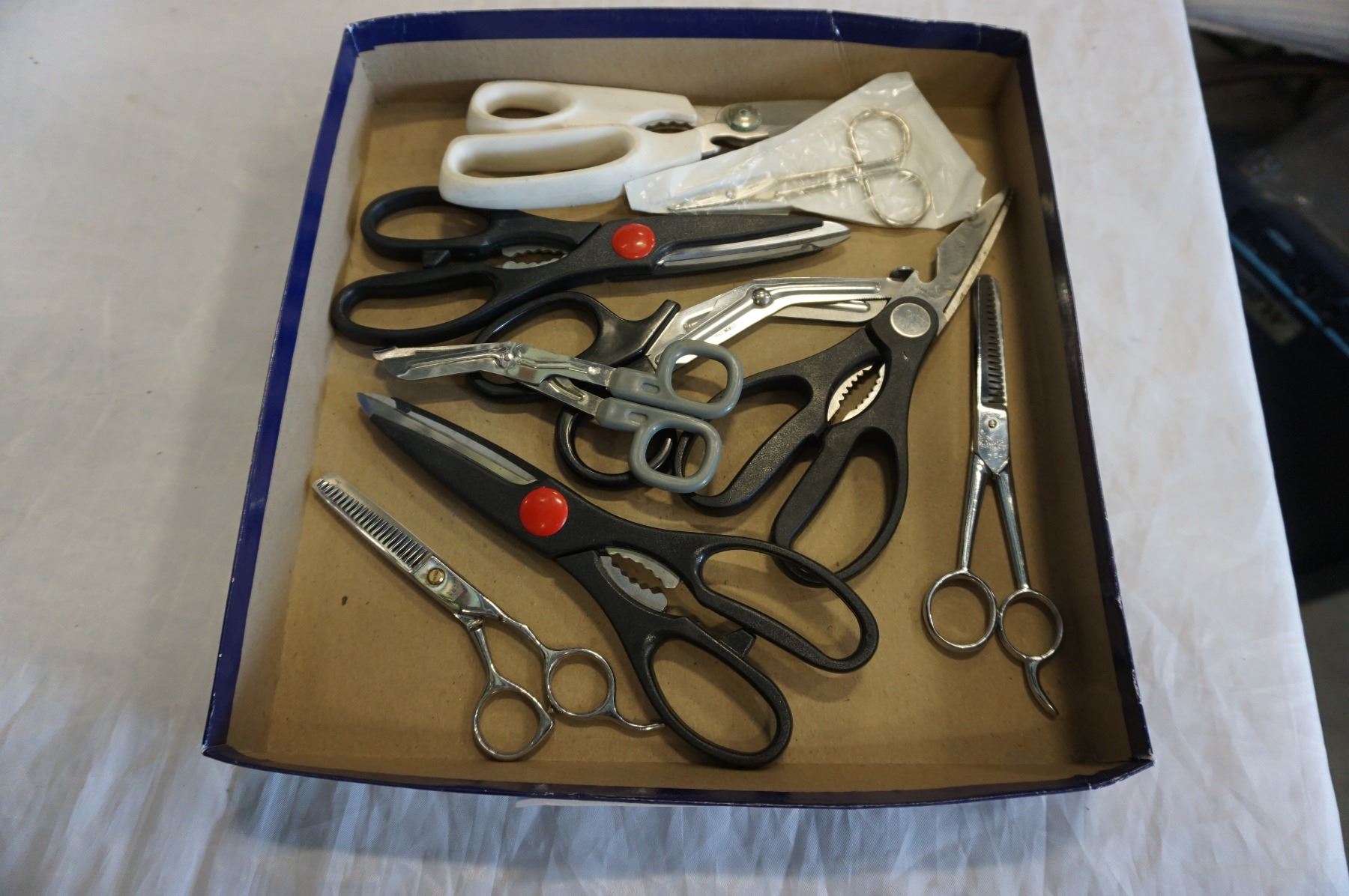TRAY LOT OF SCISSORS - SOME SURGICAL/SOME BARBER