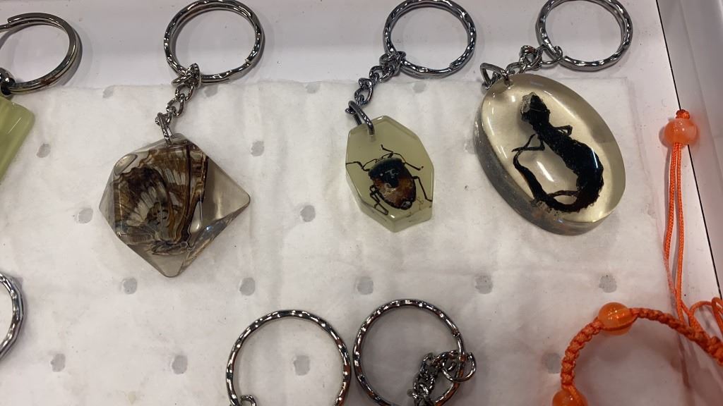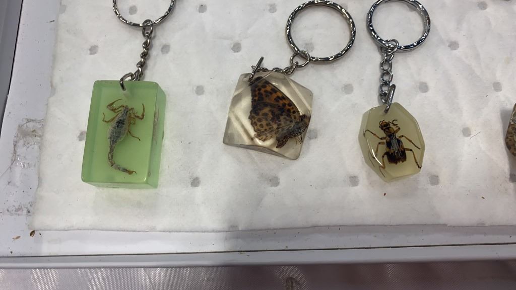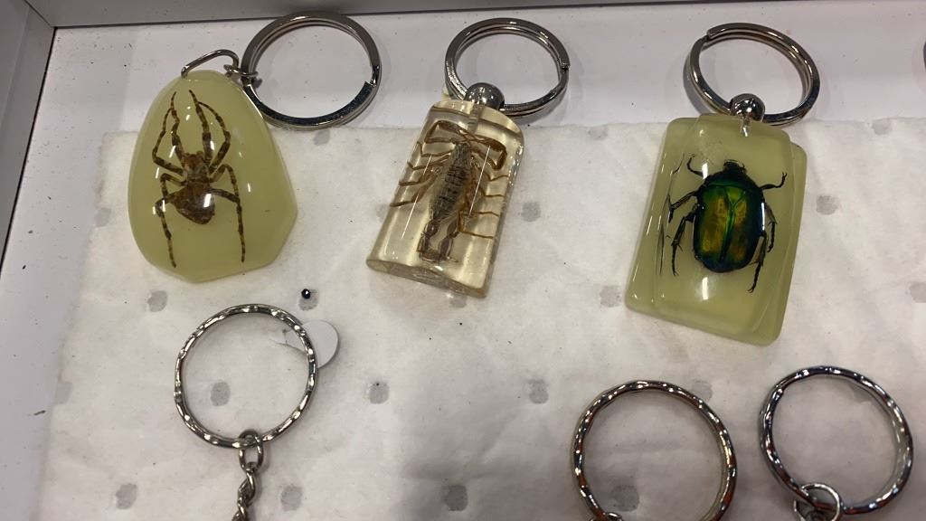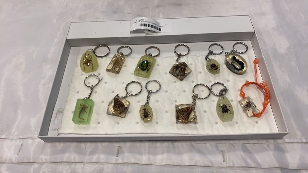 TRAY OF 12 ENCASED BUG KEYCHAINS
