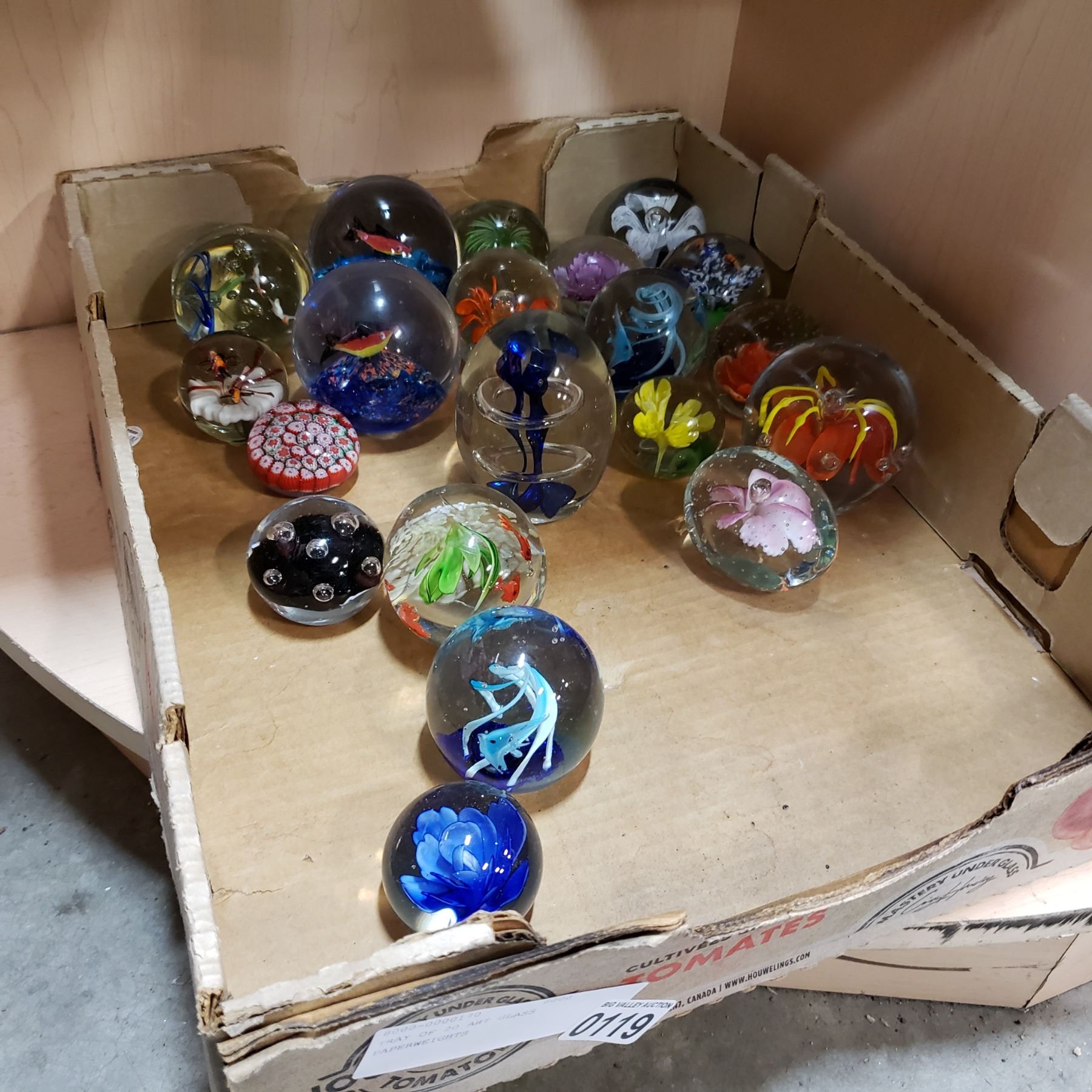 TRAY OF 20 ART GLASS PAPERWEIGHTS