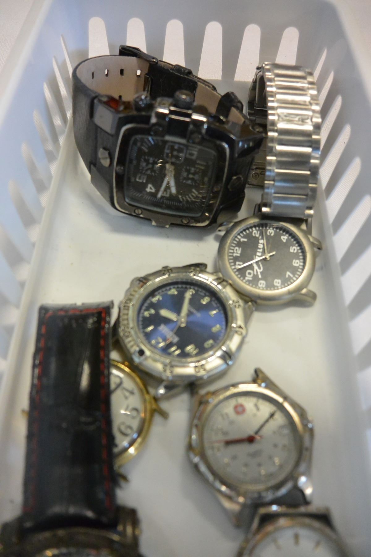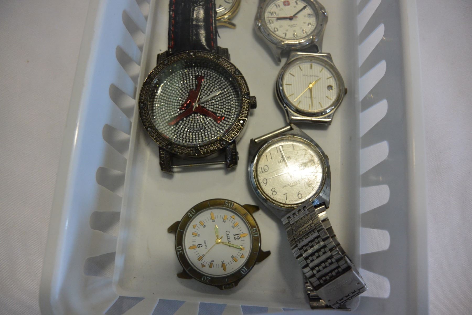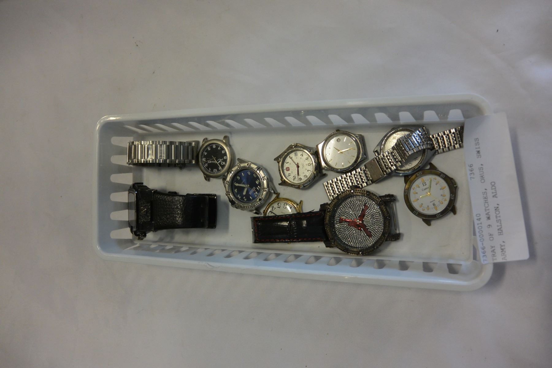 TRAY OF 9 WATCHES, ORUS, SWISS ARMY, HALSTON, ALDO