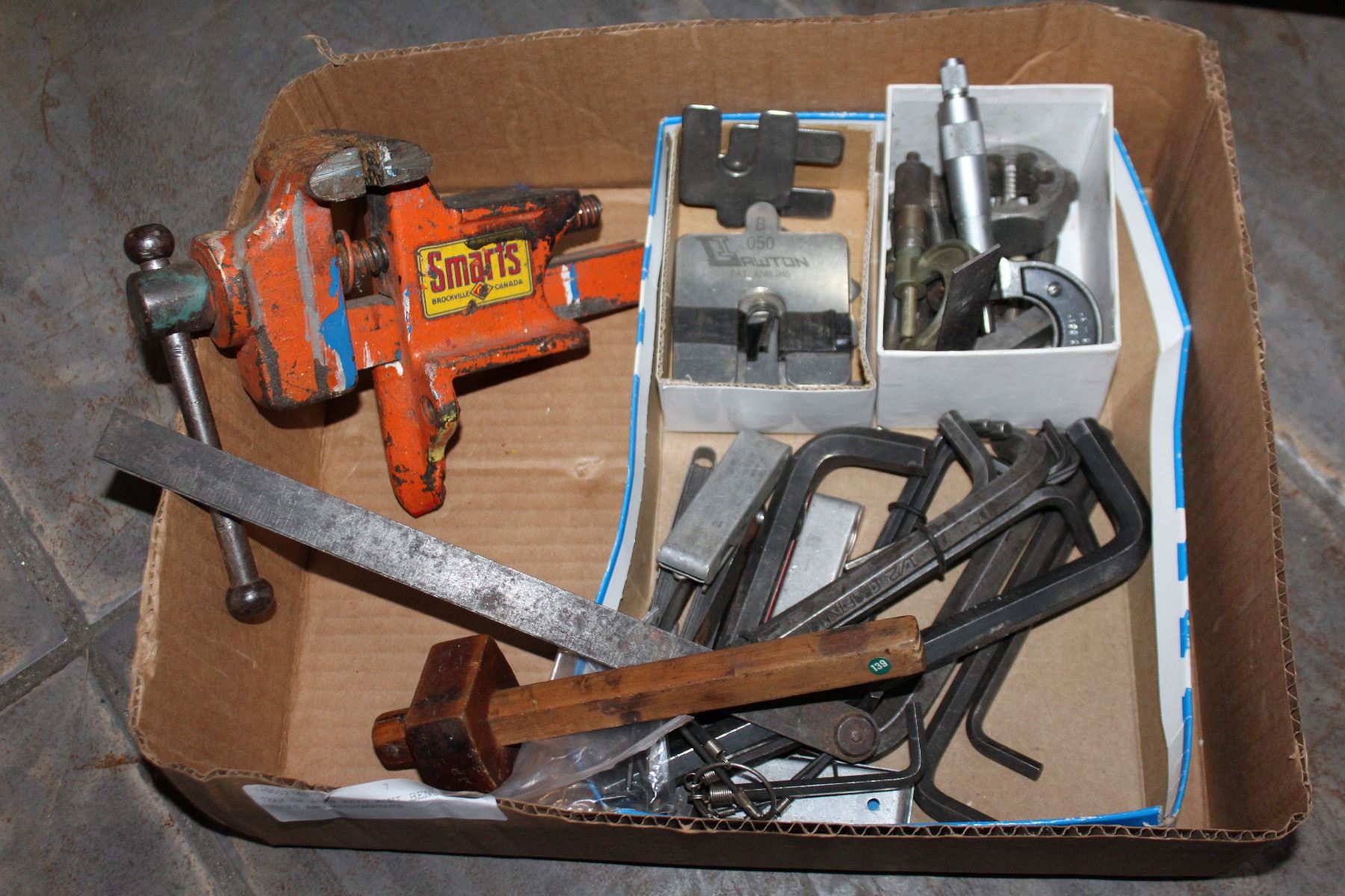 TRAY OF ALAN KEYS MINI BENCH VICES AND MICROMETERS
