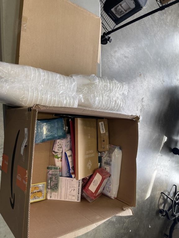 TRAY OF AMAZON OVERSTOCK INCLUDING MONT-CLAIR WATER BOTTLE, STYROFOAM CUPS