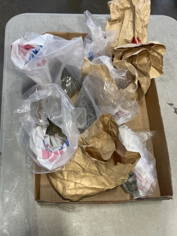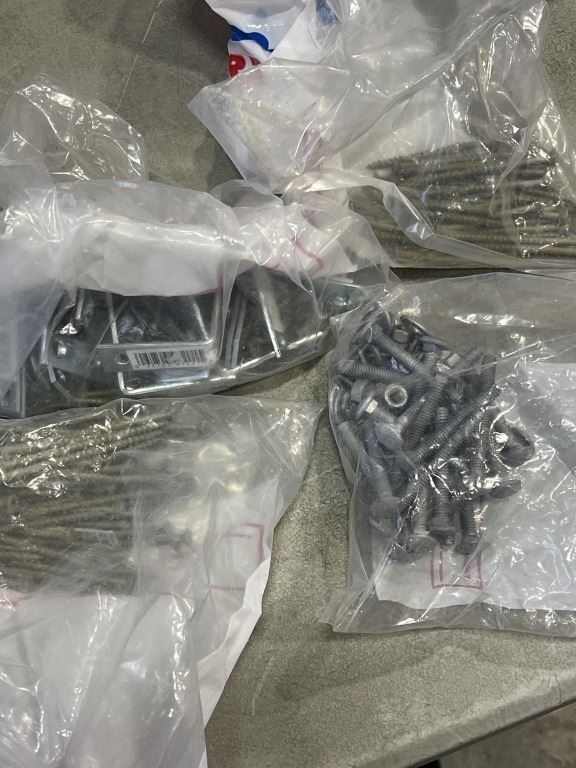 TRAY OF ASSORTED BAGS OF SCREWS, NUTS AND BOLTS, ETC