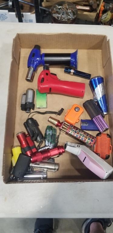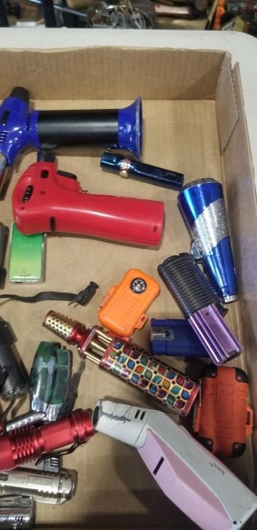TRAY OF ASSORTED BUTANE TORCHES AND LIGHTERS
