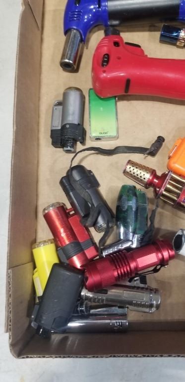 TRAY OF ASSORTED BUTANE TORCHES AND LIGHTERS