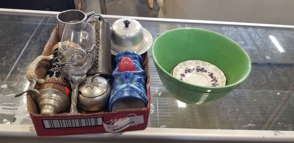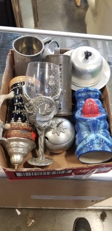TRAY OF ASSORTED COLLECTIBLES, PEWTER ETC