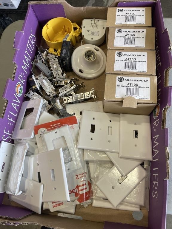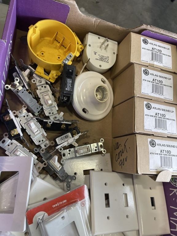 TRAY OF ASSORTED ELECTRICAL WITH DEORA VOLUME CONTROLS