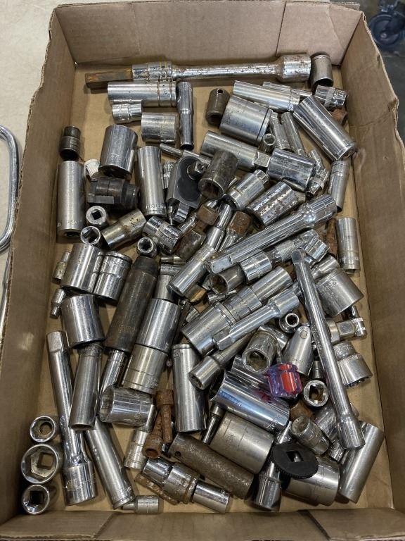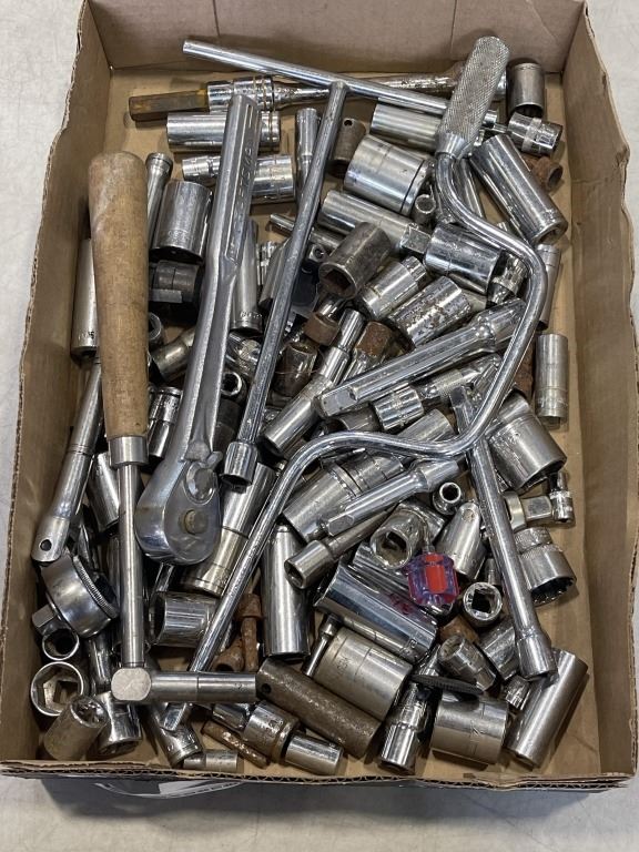 TRAY OF ASSORTED SOCKETS AND WRENCHES