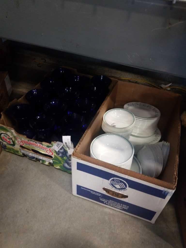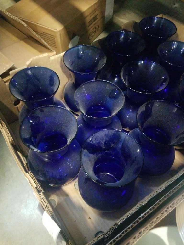TRAY OF BLUE VASES AND BOWLS