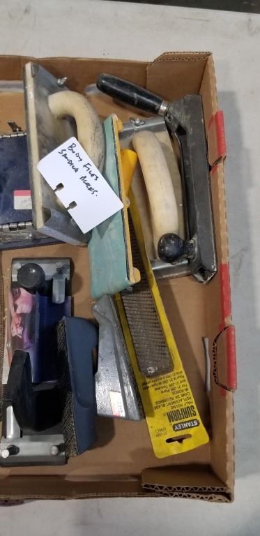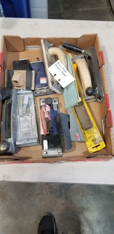 TRAY OF BODY FILES AND SANDING BLOCKS