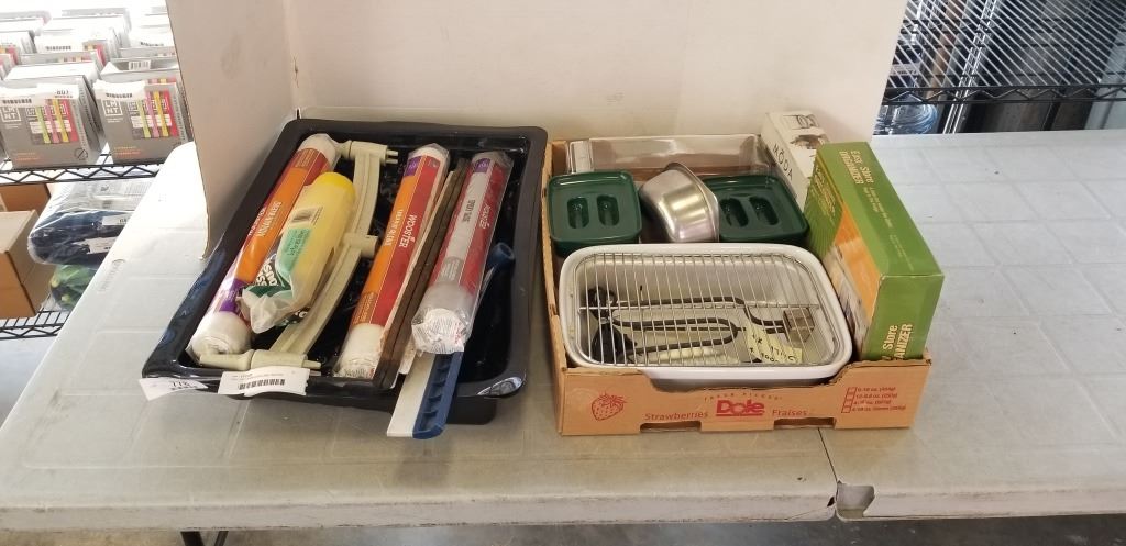 TRAY OF CANNISTERS AND INDOOR GRILLER, AND TRAY OF PAINT SUPPLIES