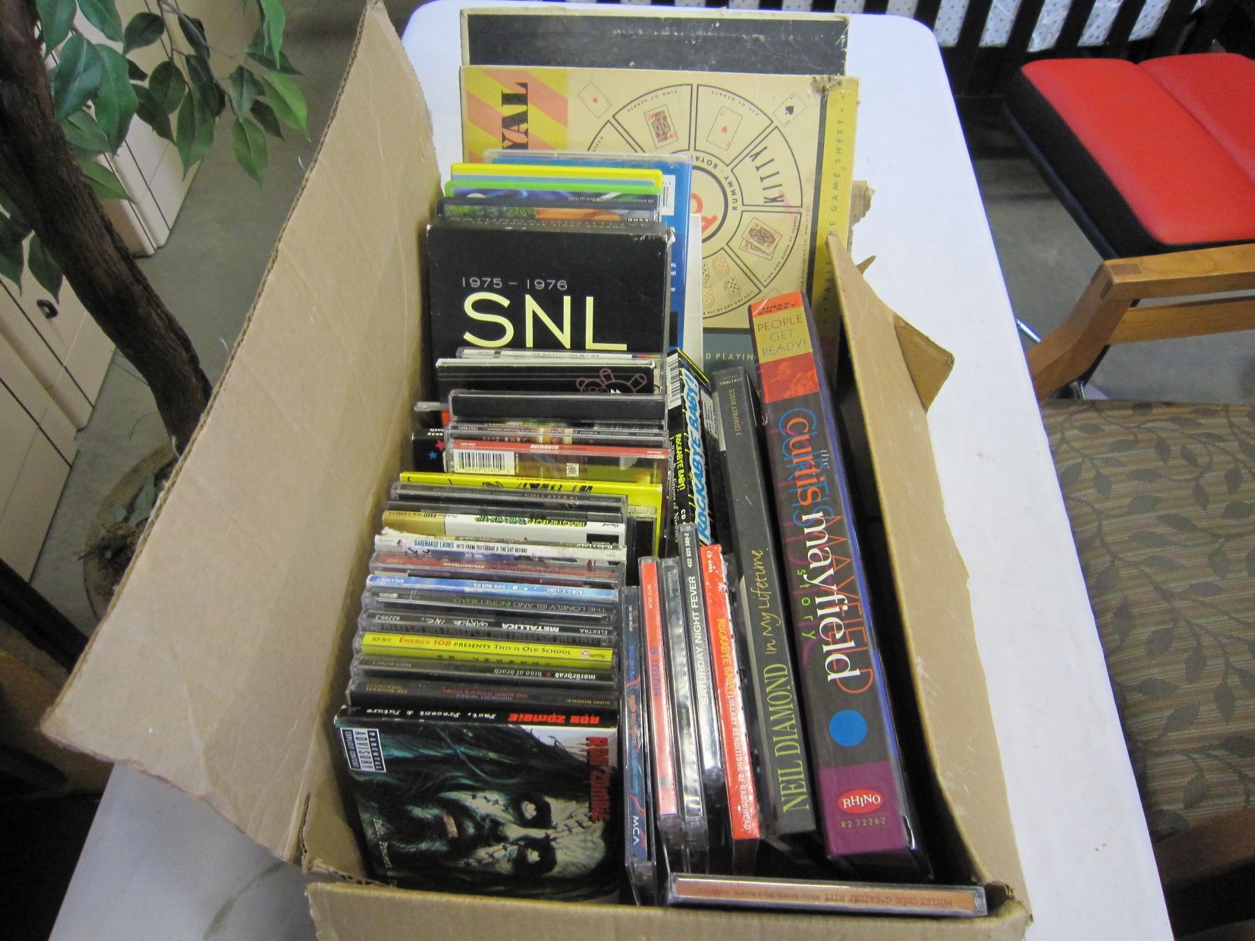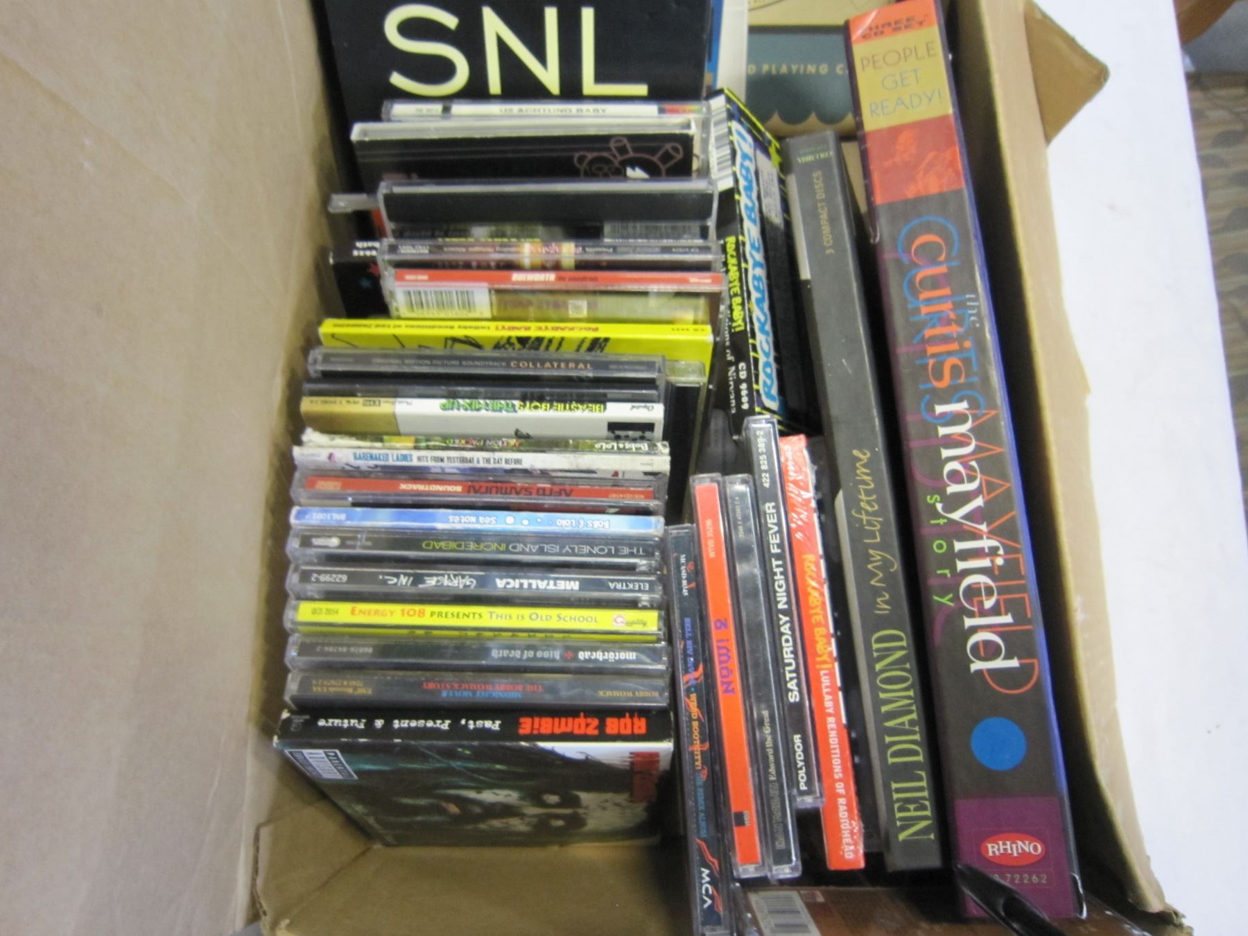 TRAY OF CDS - ROCK AND OTHERS, RECORDS, AND DVDS
