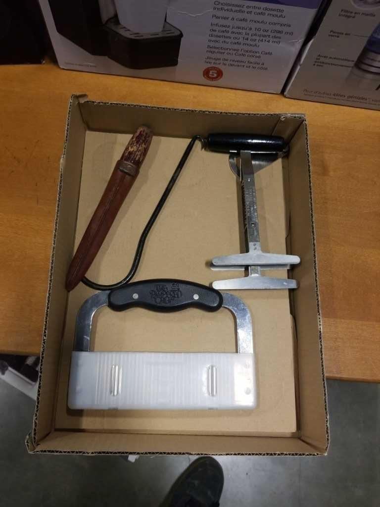 TRAY OF CHEF TOOLS, HOOK AND HANDLE