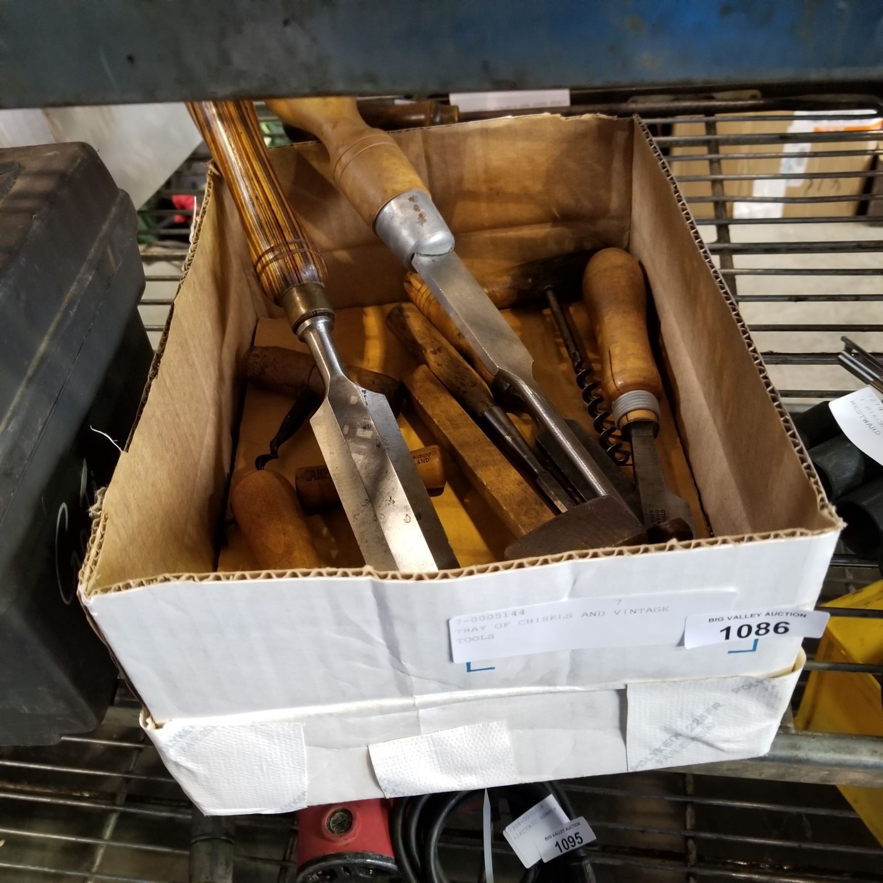 TRAY OF CHISELS AND VINTAGE TOOLS