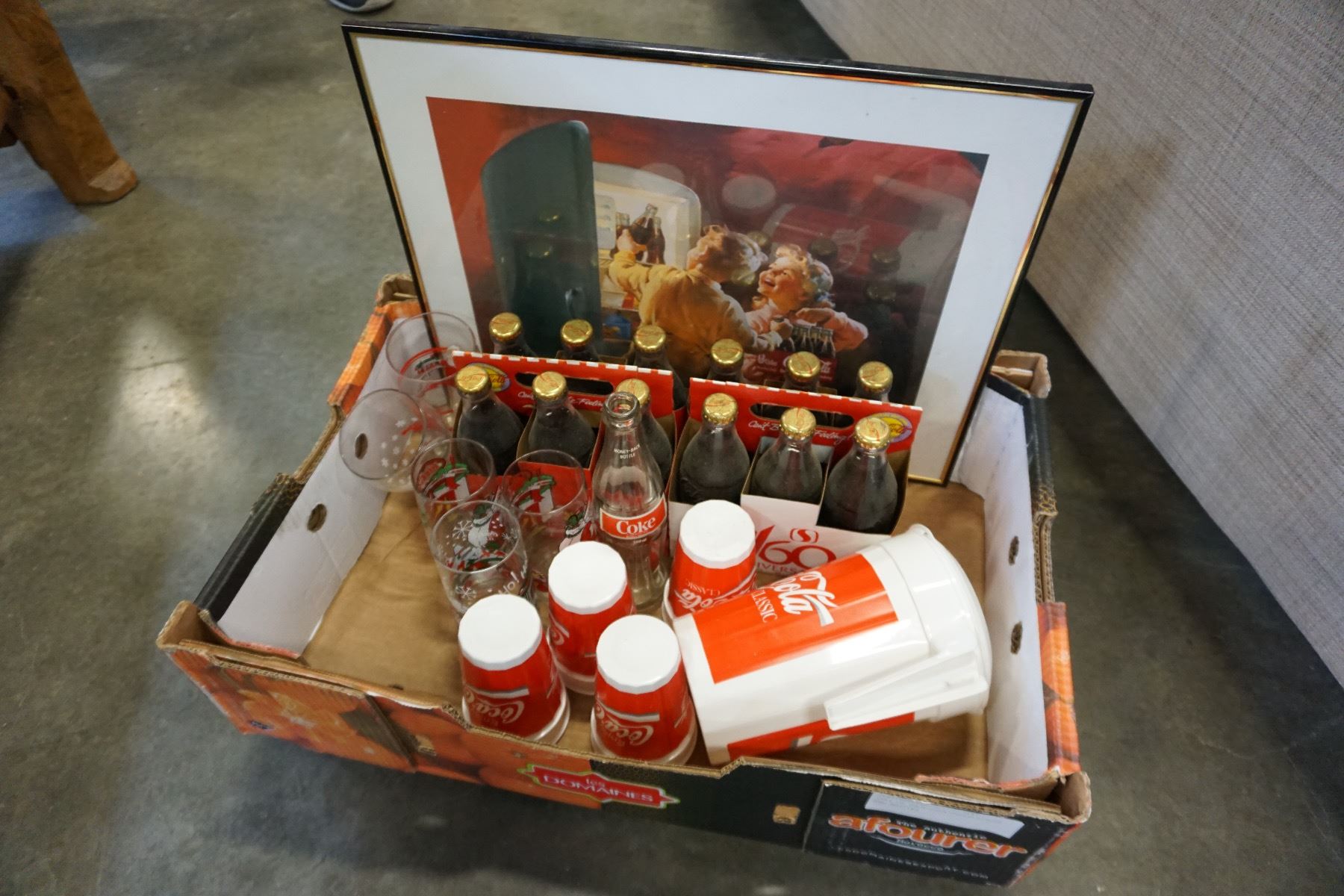 TRAY OF COCA-COLA COLLECTIBLES AND BOTTLES