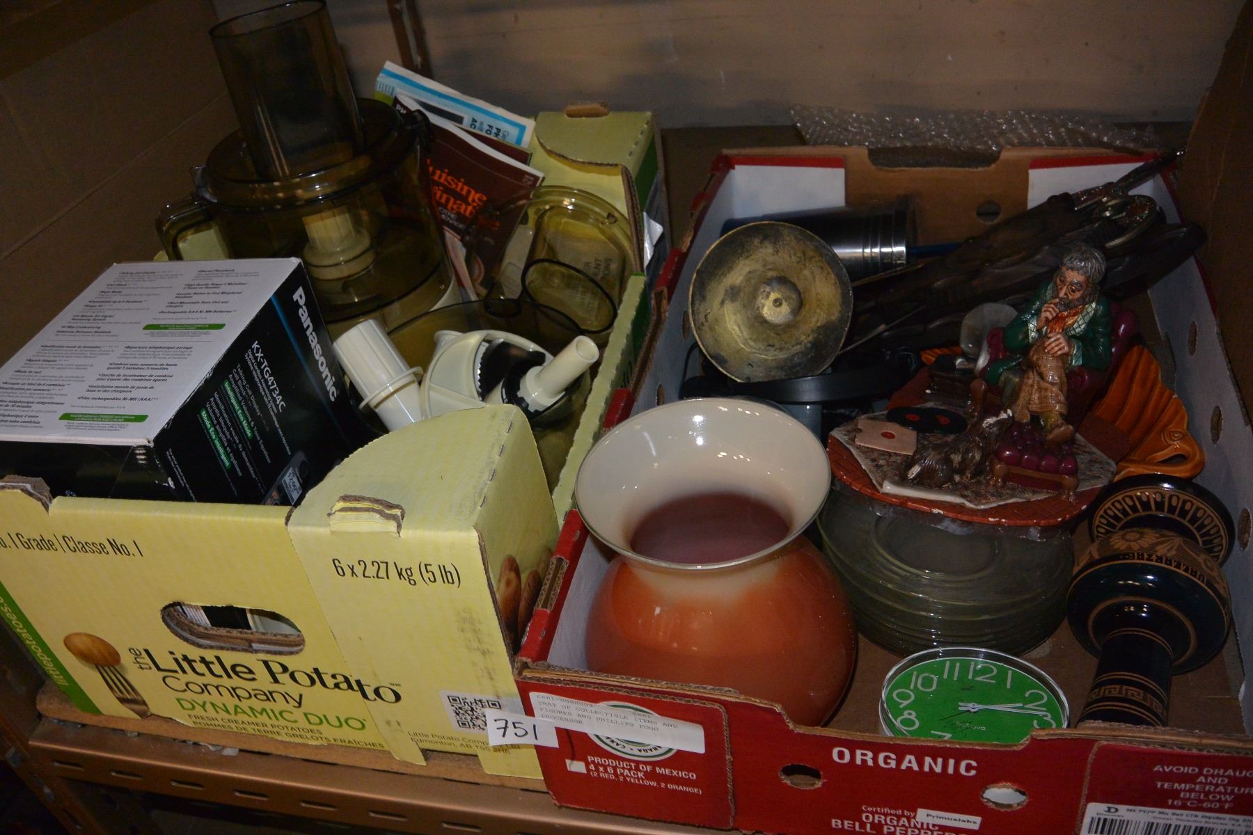 TRAY OF COLLECTIBLE ITEMS AND FIGURES AND PHILLIPS FOOD PROCESSOR