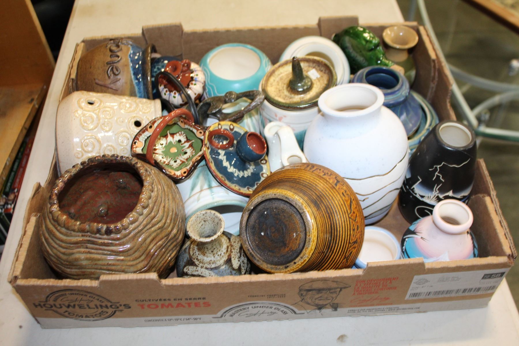 TRAY OF COLLECTIBLE POTTERY - SOME SIGNED