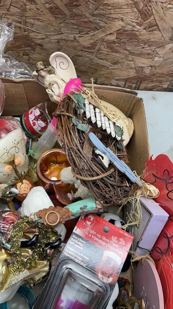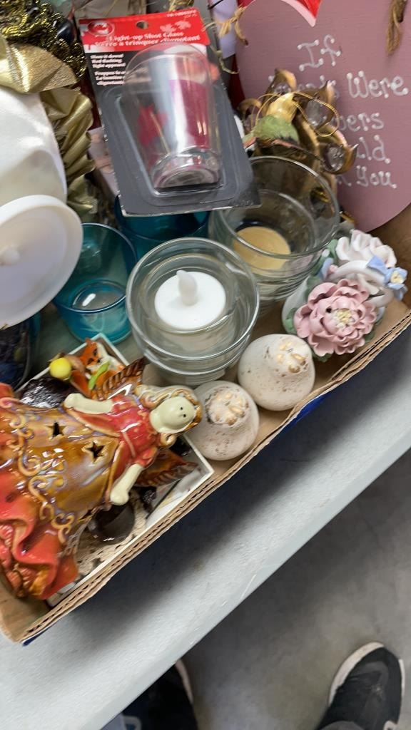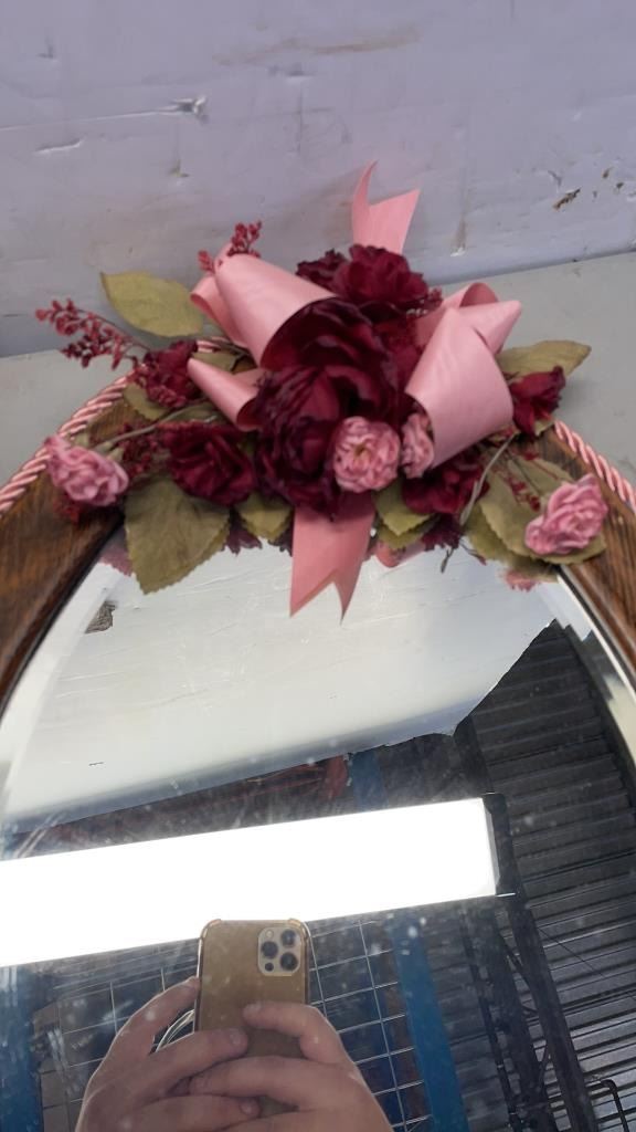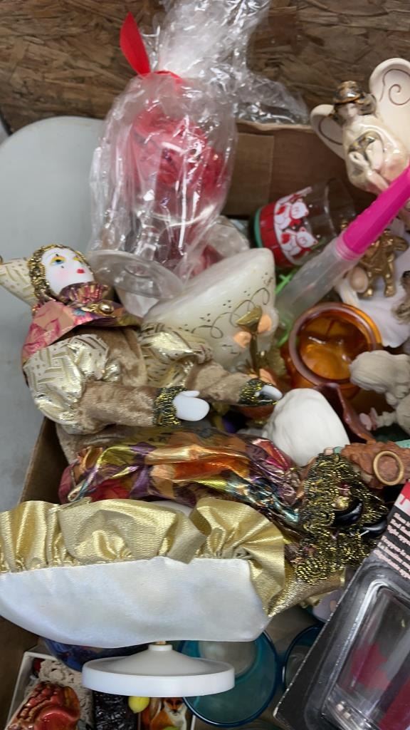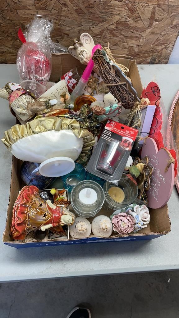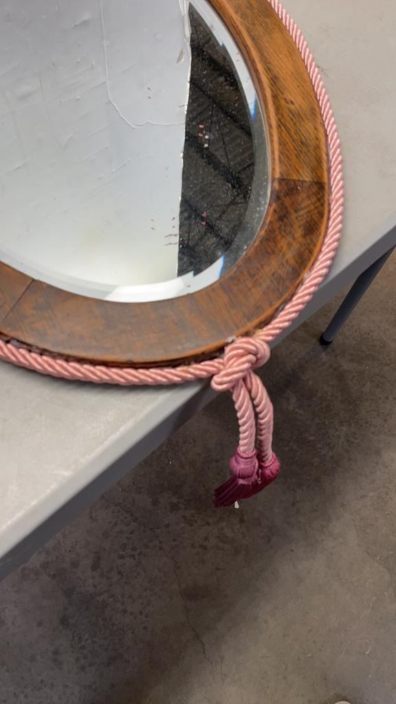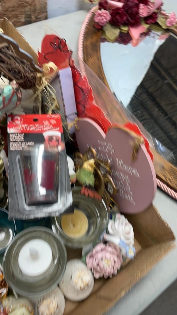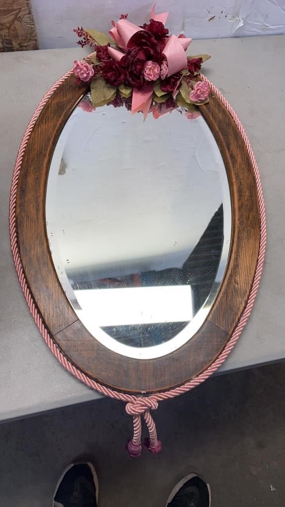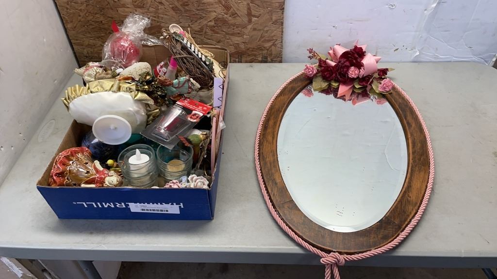TRAY OF COLLECTIBLES AND FRAMED MIRROR
