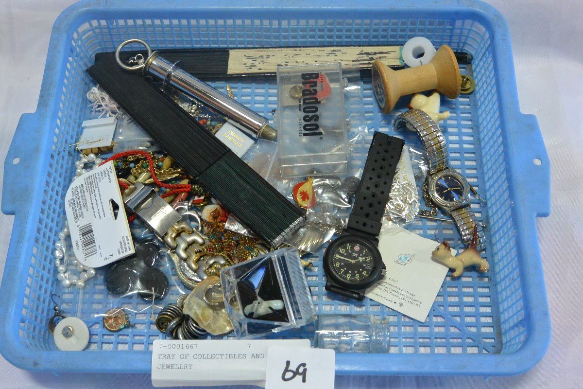 TRAY OF COLLECTIBLES AND JEWELLRY