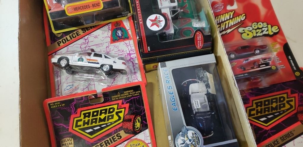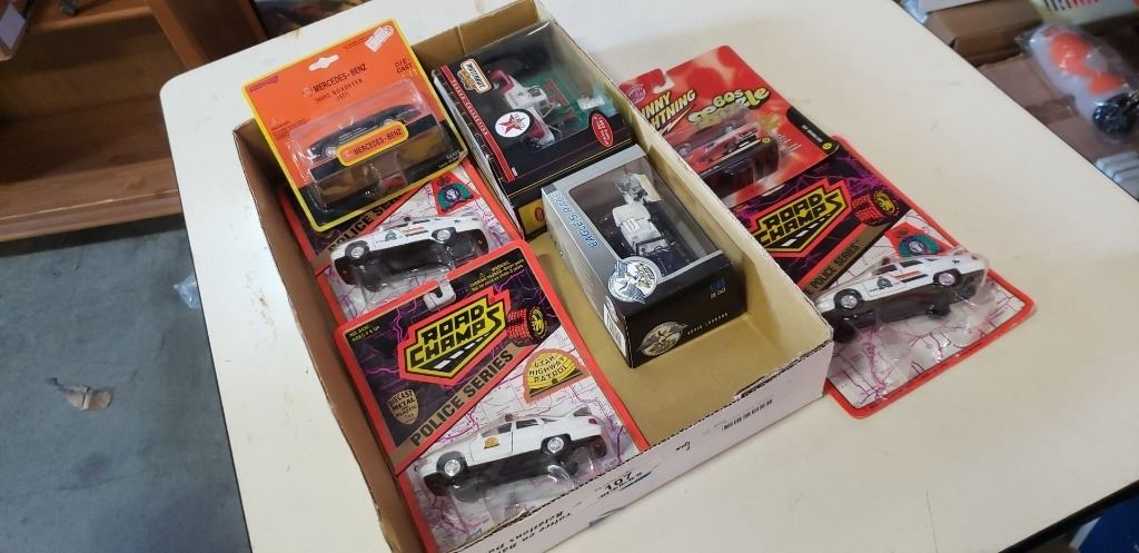 TRAY OF DIE CAST CARS, TEXACO MATCHBOX, NEWRAY, ROAD CHAMPS
