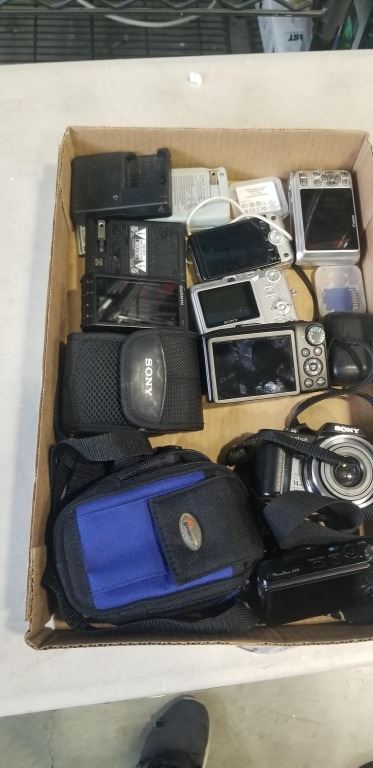 TRAY OF DIGITAL CAMERAS, CASES AND CHARGERS