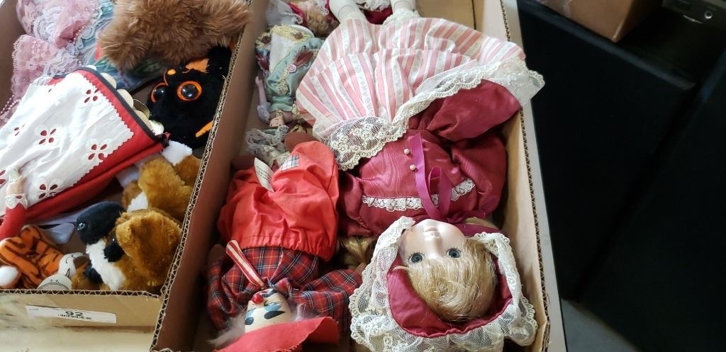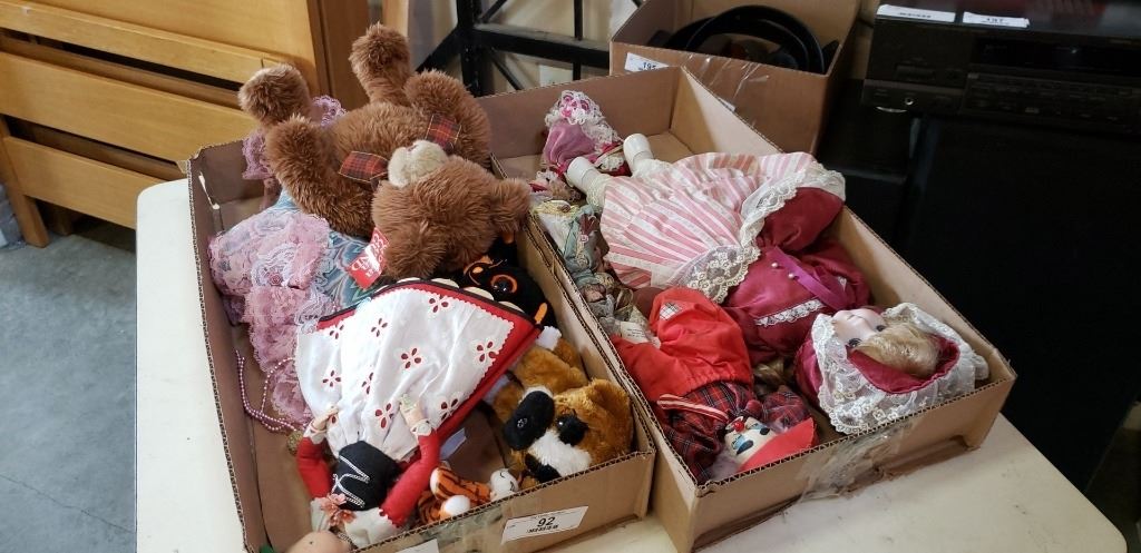 TRAY OF DOLLS AND TRAY OF STUFFED ANIMALS