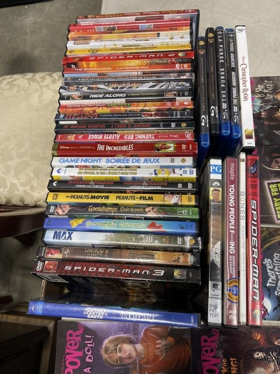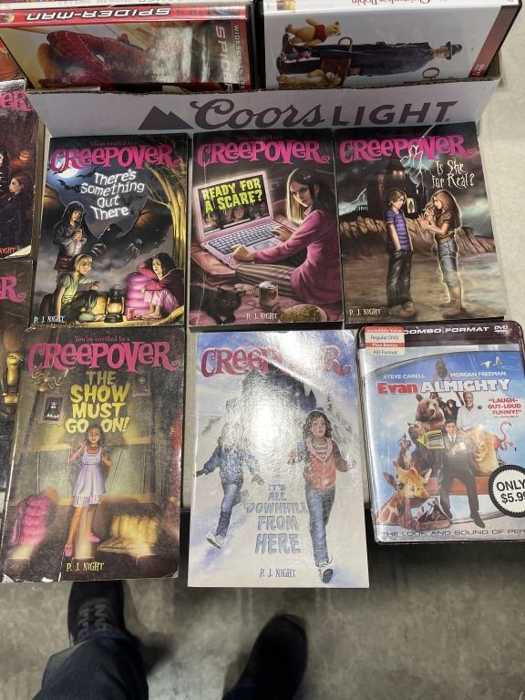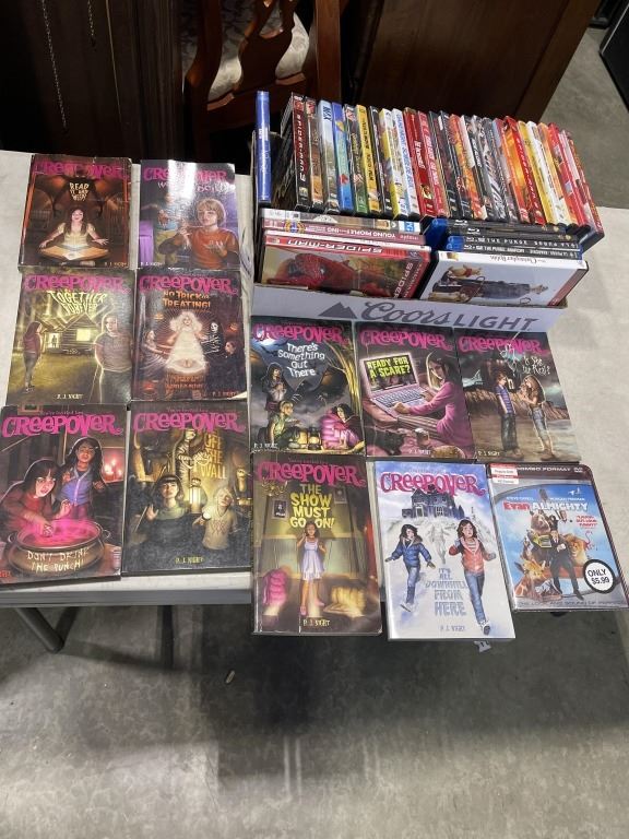 TRAY OF DVDS, BLU RAYS AND CREEPOVER BOOKS