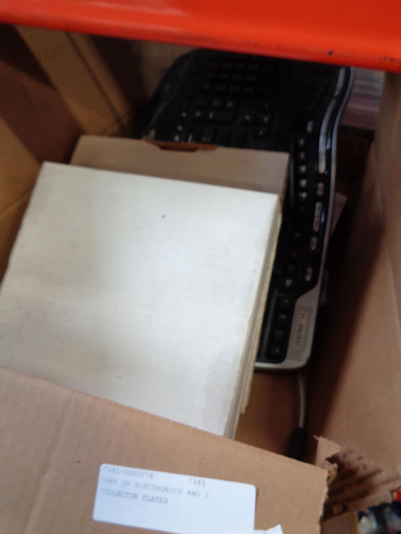 TRAY OF ELECTRONICS AND 2 COLLECTOR PLATES