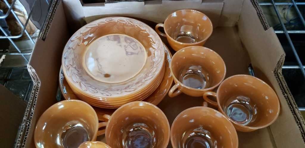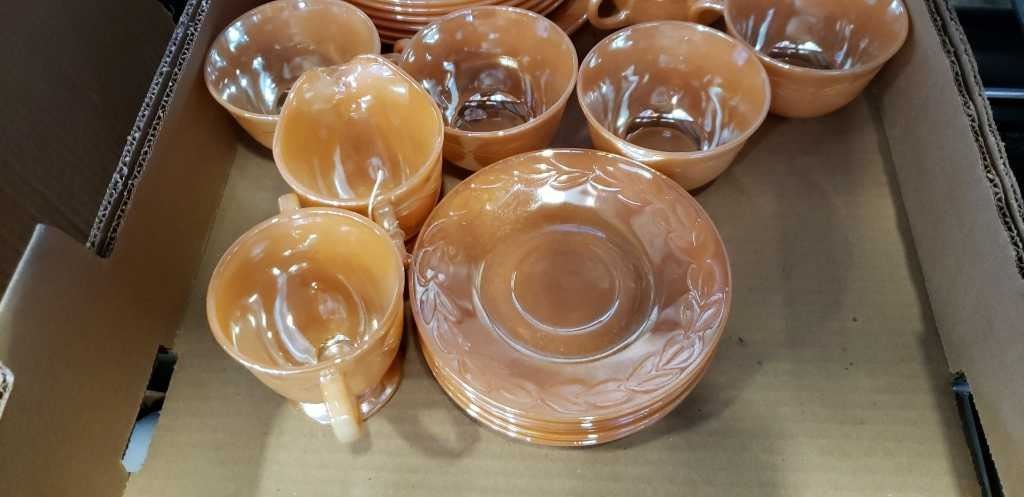 TRAY OF FIRE KING PEACH LUSTRE WARE