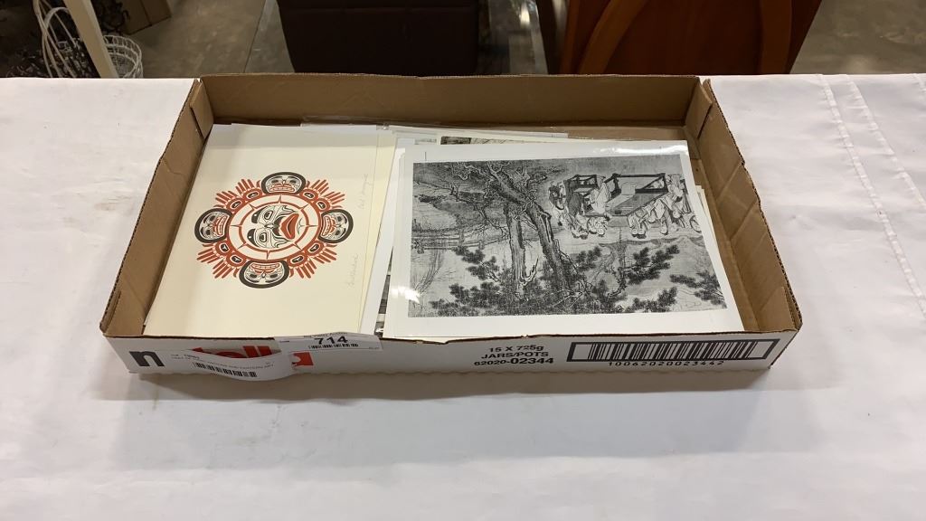 TRAY OF FIRST NATIONS AND EASTERN ART PRINTS