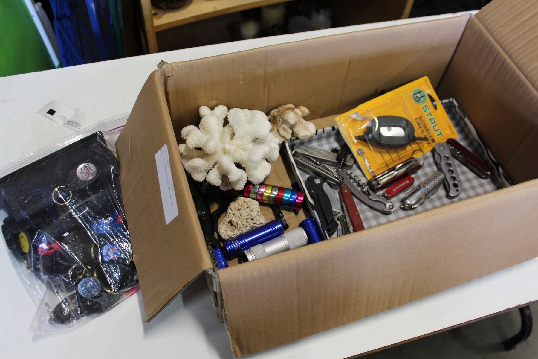 TRAY OF FLASHLIGHTS AND KNIVES ETC