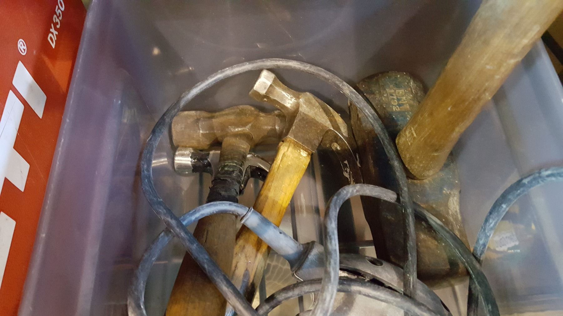 TRAY OF HAMMERS AND TOOLS