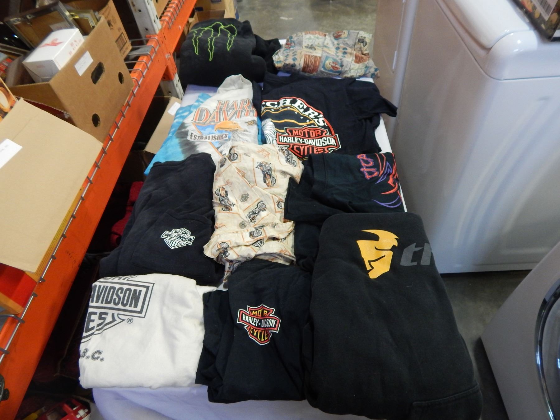 TRAY OF HARLEY DAVIDSON T-SHIRTS, MONSTER HOODIE ETC
