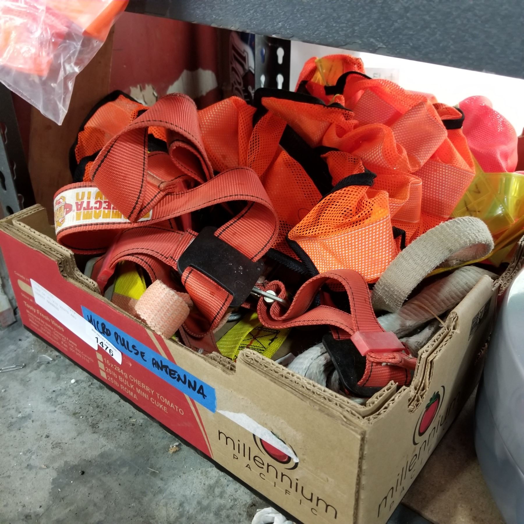 TRAY OF HI VIS VESTS AND SAFETY HARNESS
