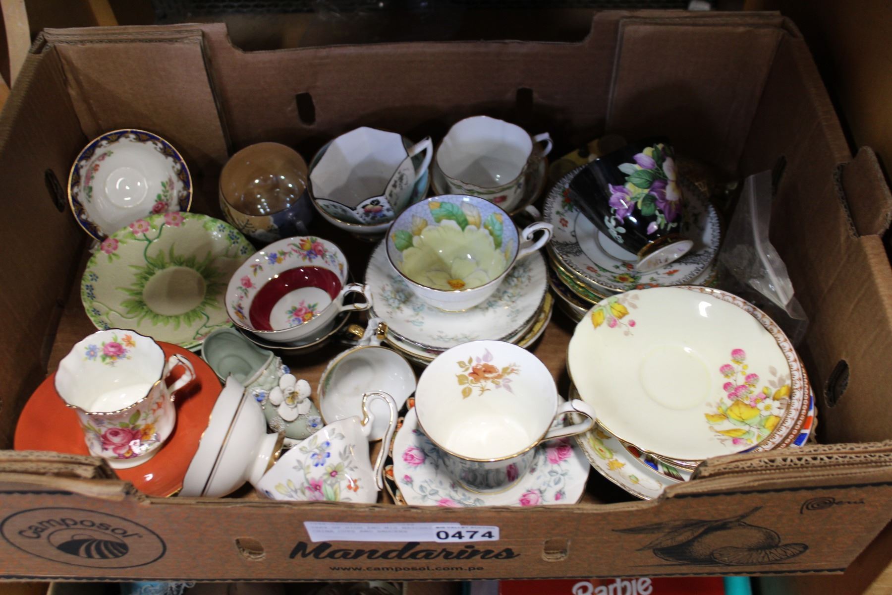 TRAY OF HIGH END MIS MATCHED CHINA CUPS AND SAUCERS