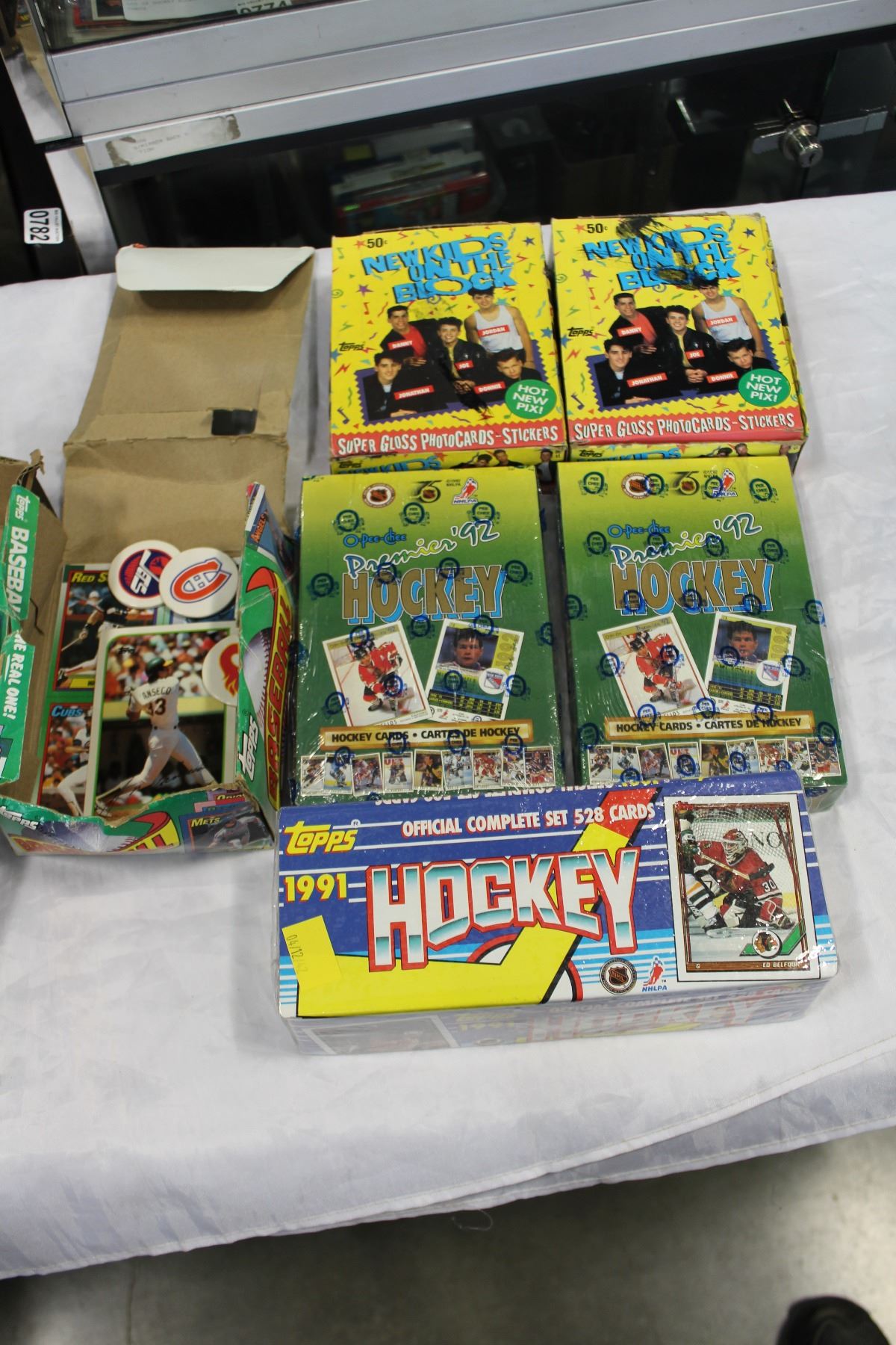 TRAY OF HOCKEY AND NEW KIDS ON THE BLOCK CARDS