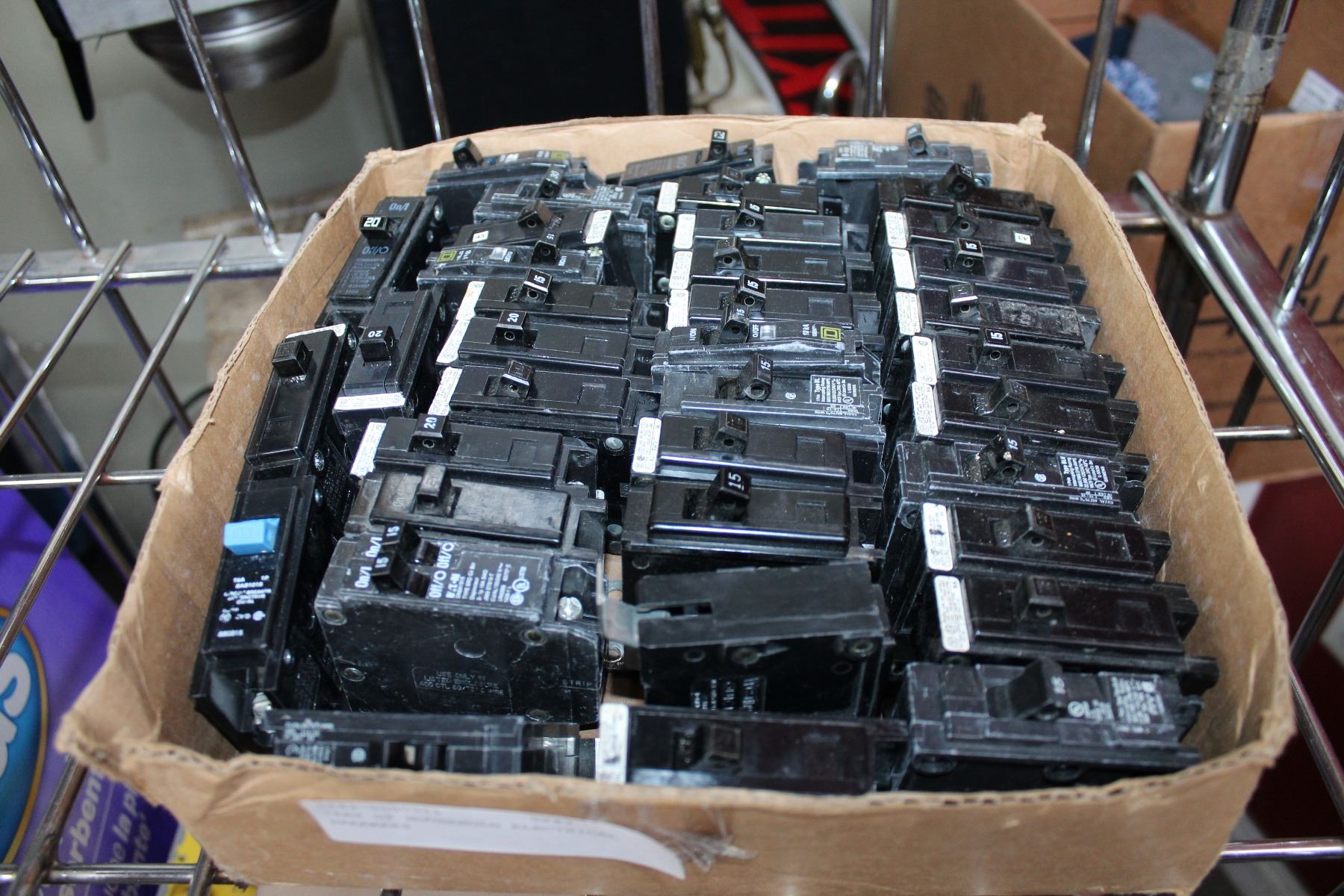 TRAY OF HOUSEHOLD ELECTRICAL BREAKERS