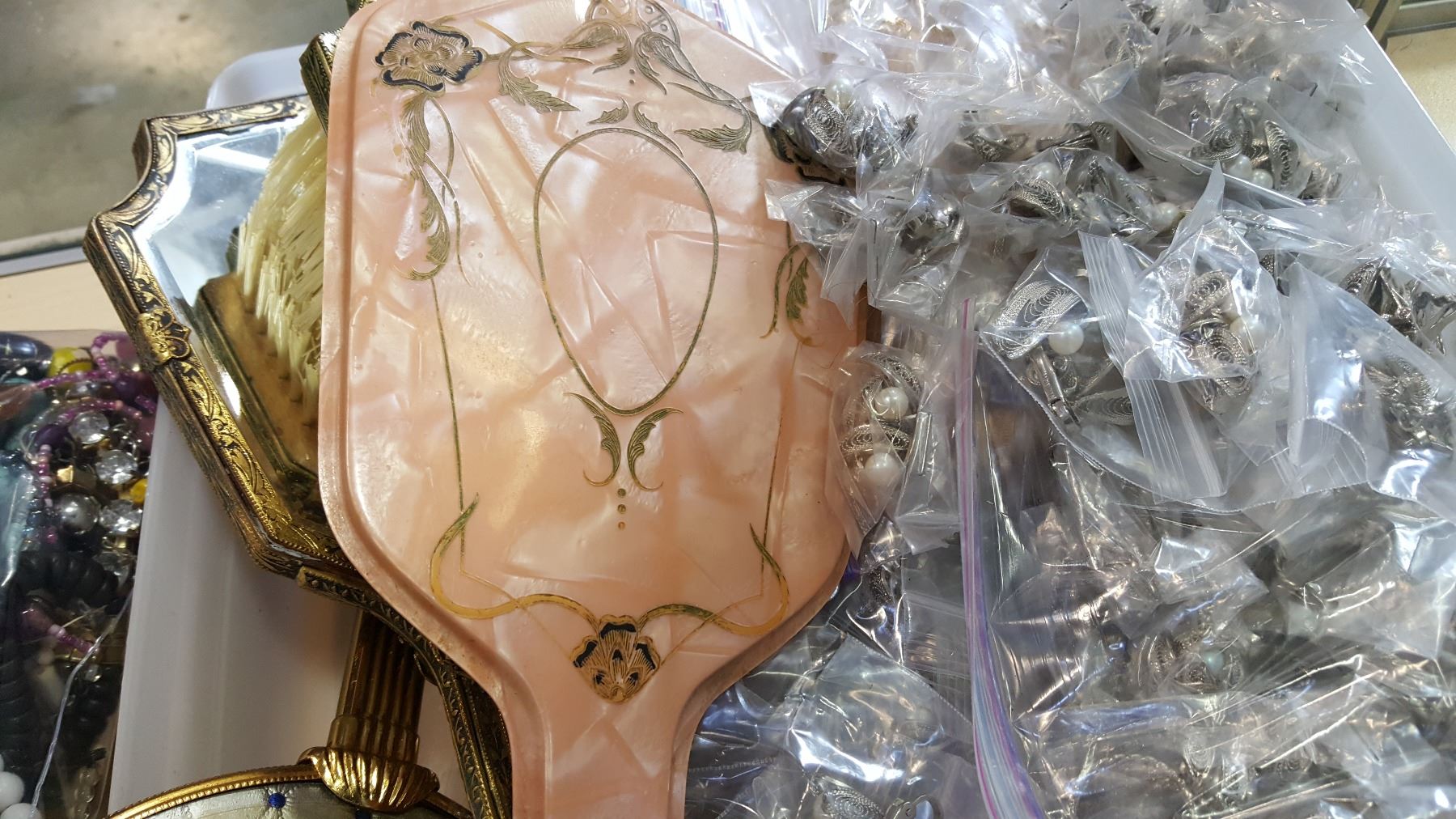 TRAY OF JEWELRY AND VANITY SET