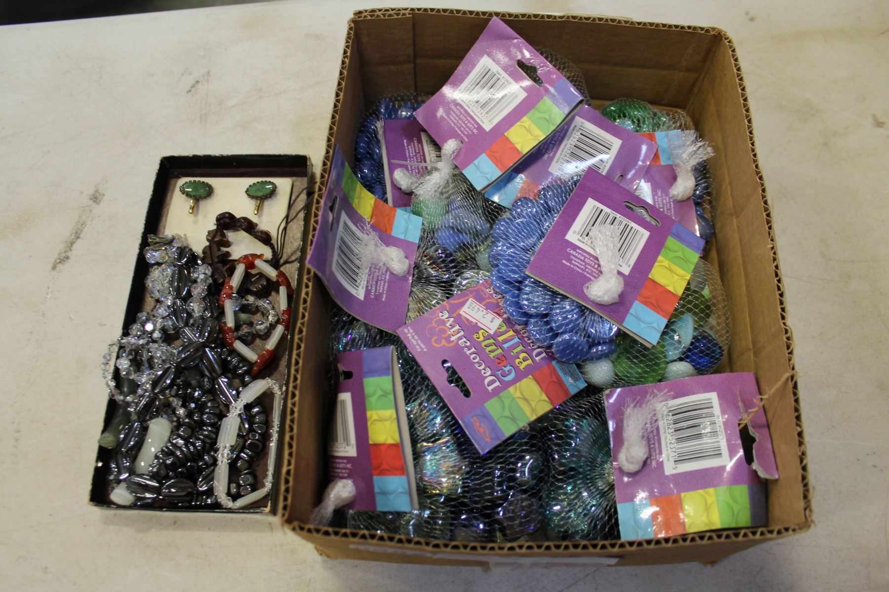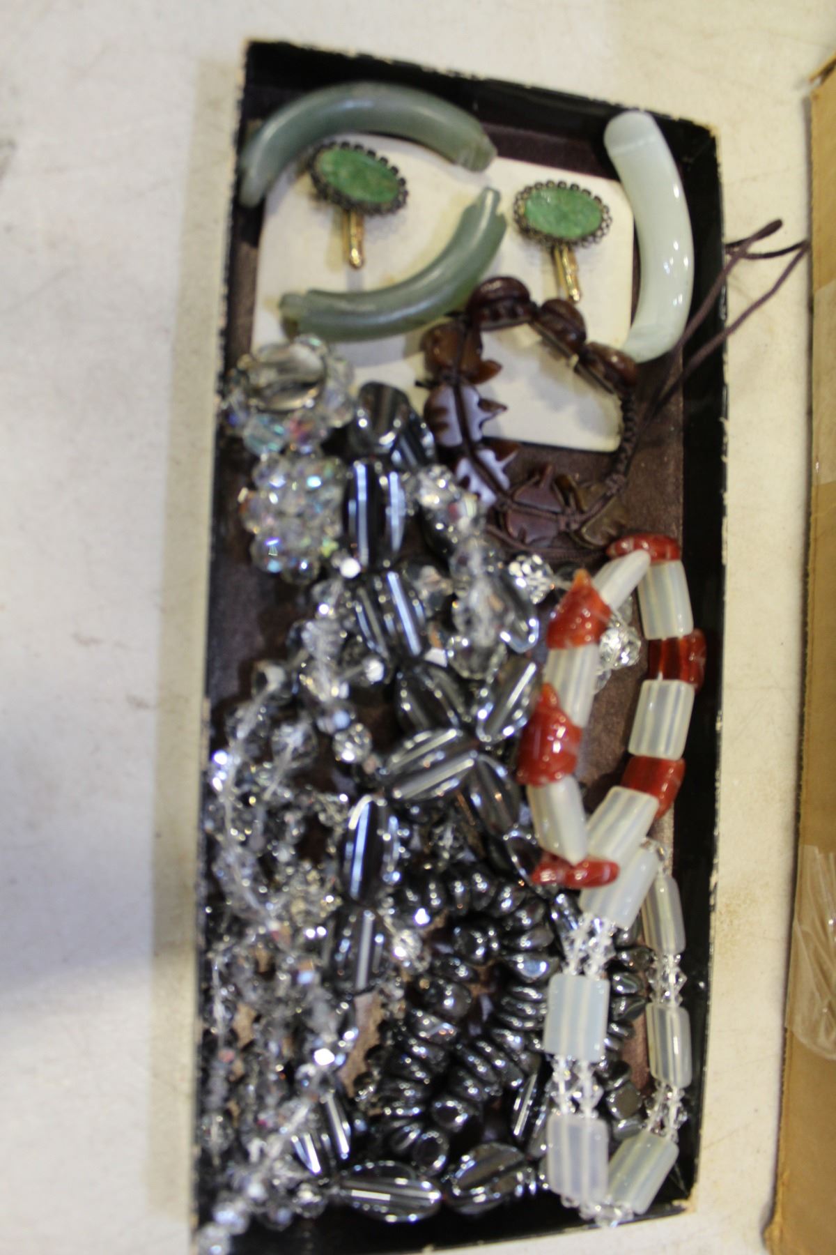 TRAY OF JEWELRY, JADE PIECES, AND GLASS BEADS