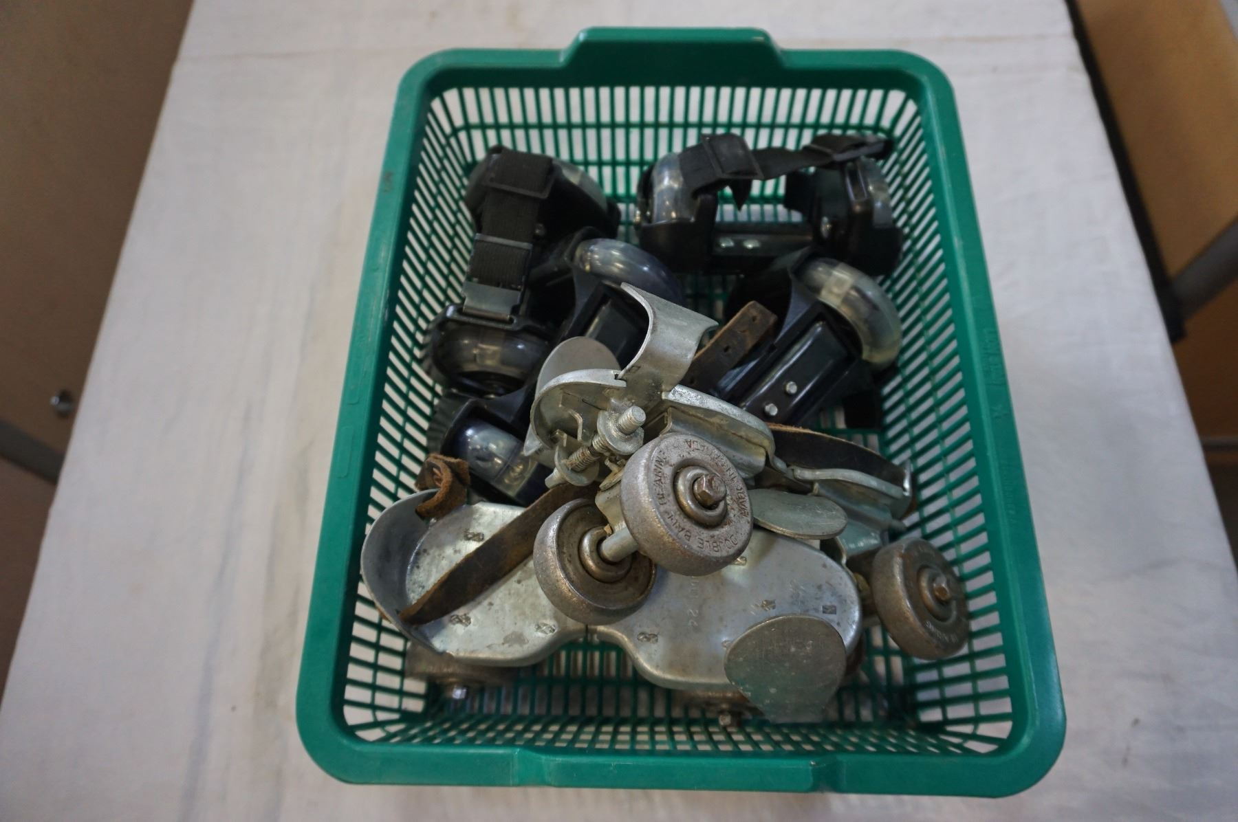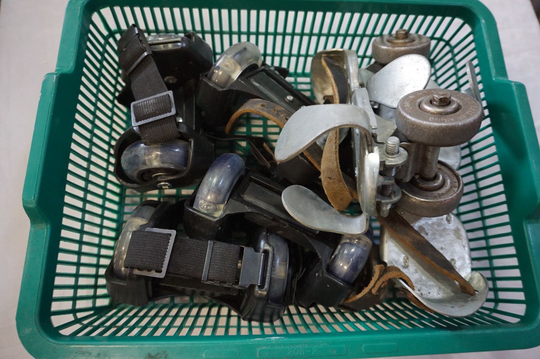 TRAY OF LIGHT UP STRAP ON HEELYS AND VINTAGE STRAP ON ROLLER SKATES