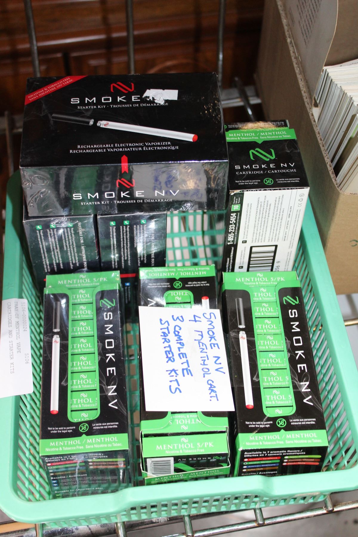 TRAY OF MENTHOL VAPE CARTRIDGES AND STARTER KITS