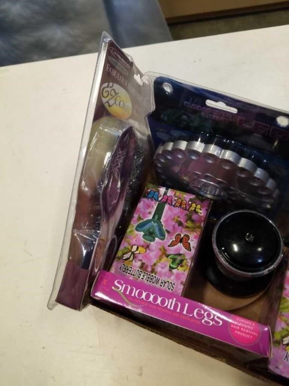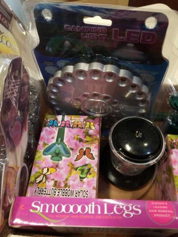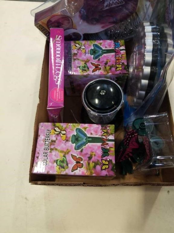 TRAY OF NEW ITEMS, SOLAR BUTTERFLY, EZ COMB, SMOOTH LEGS AND MORE