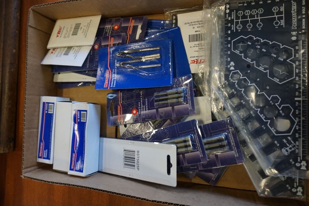 TRAY OF NEW WESTWARD BITS, SOLDERING TIPS, ITEMS