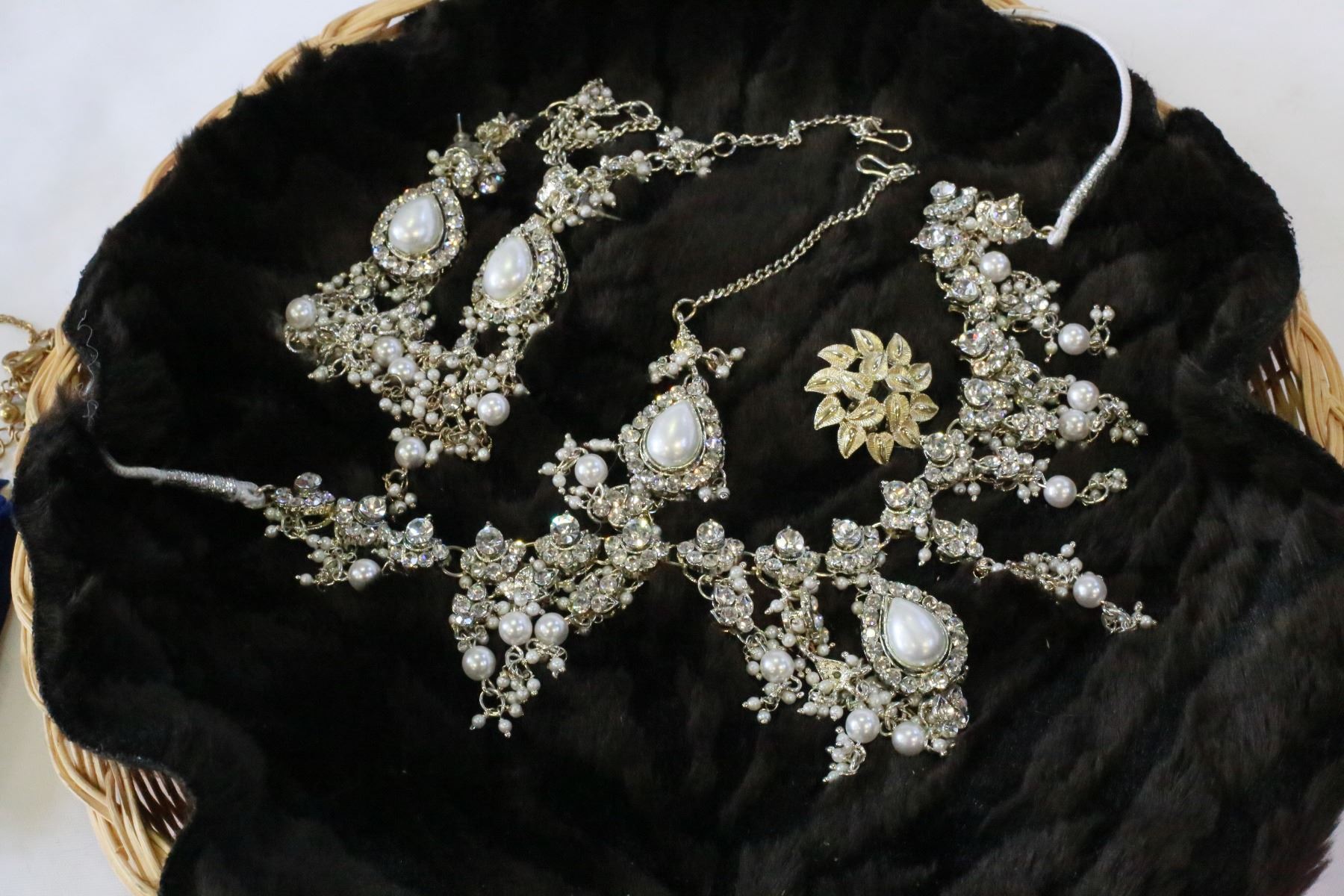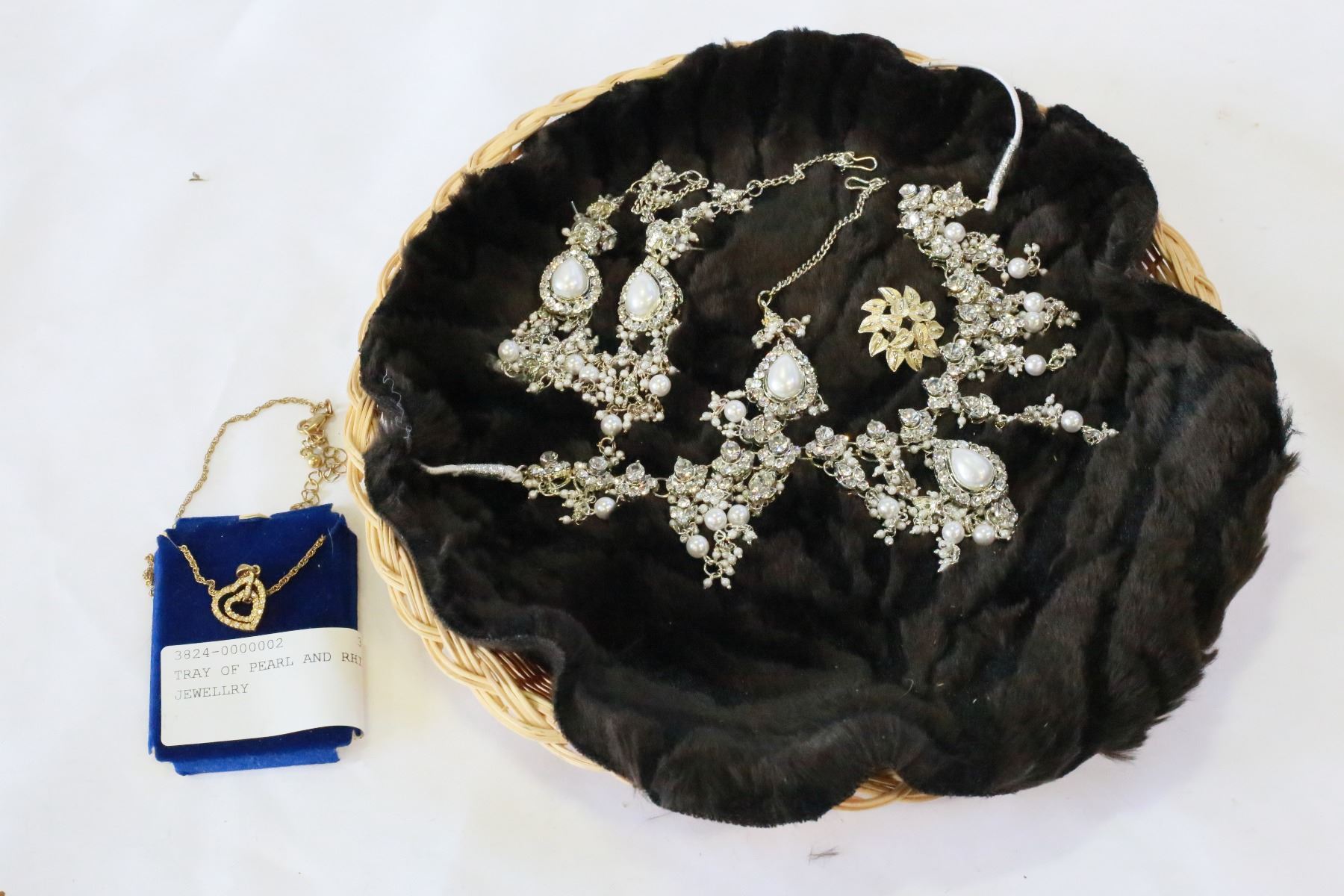 TRAY OF PEARL AND RHINESTONE JEWELLRY
