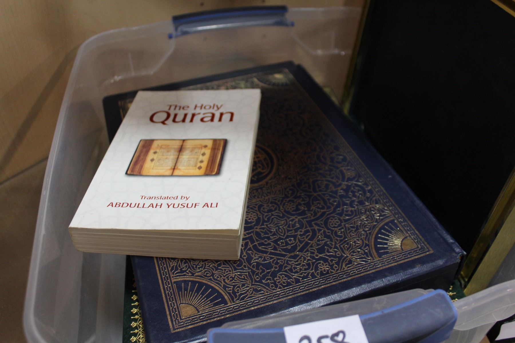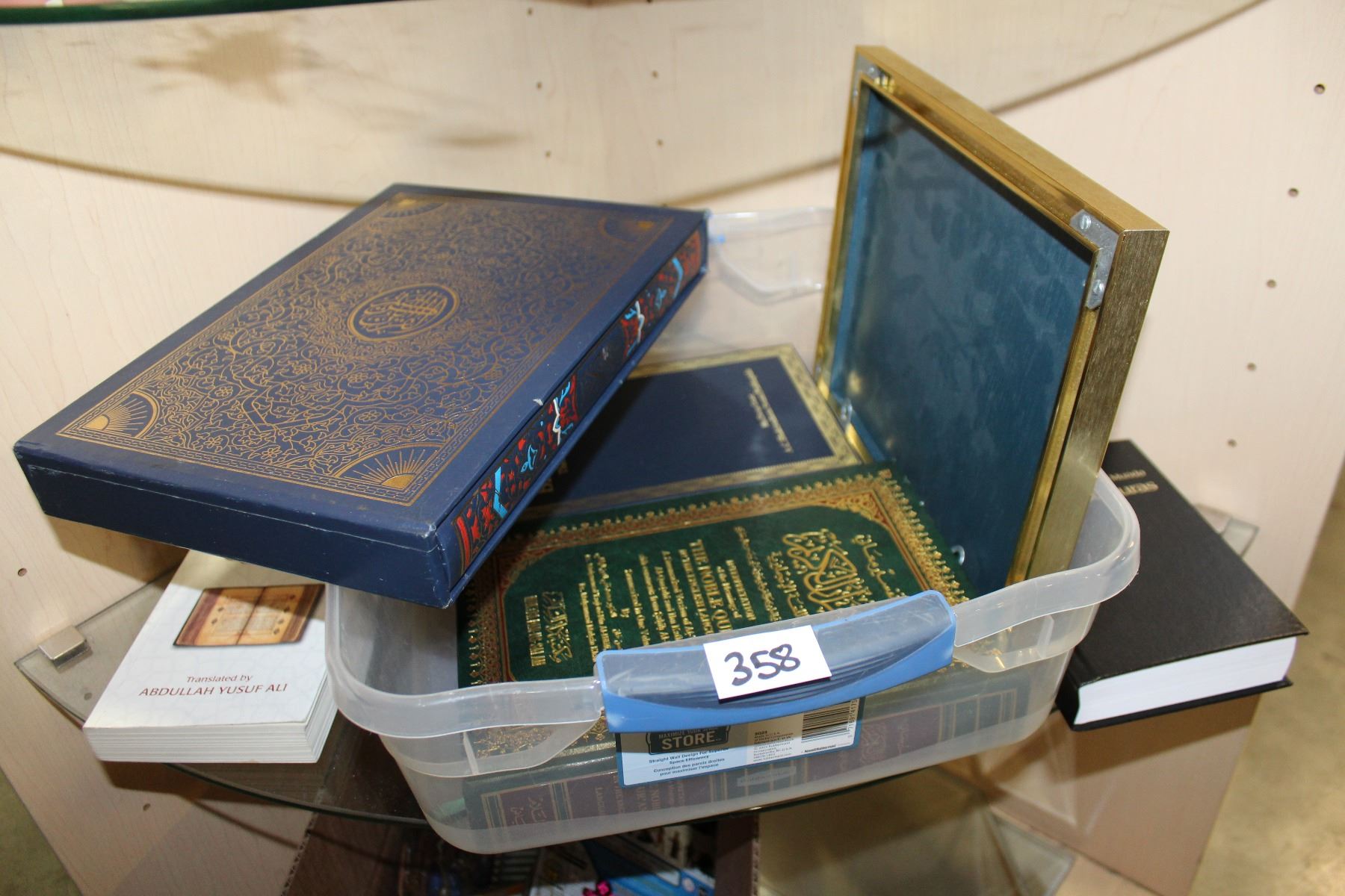 TRAY OF QURANS AND PICTURE