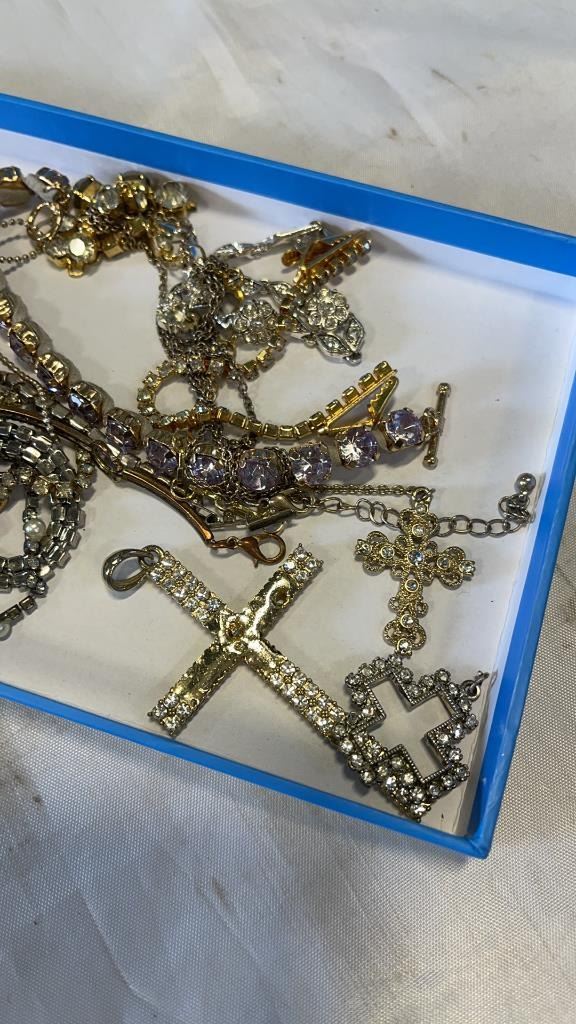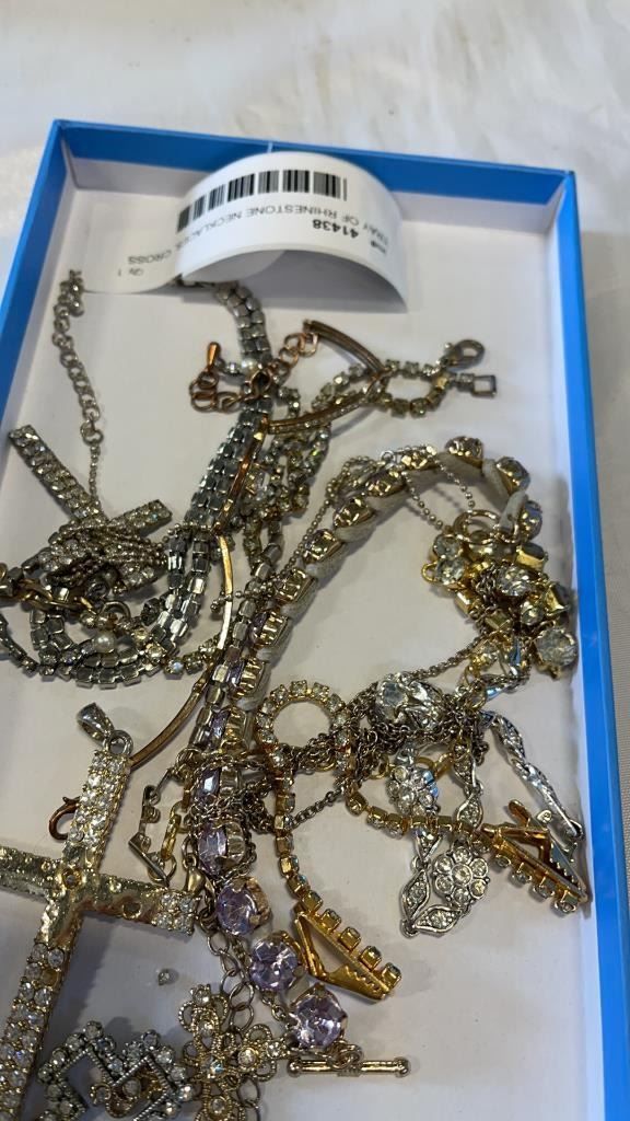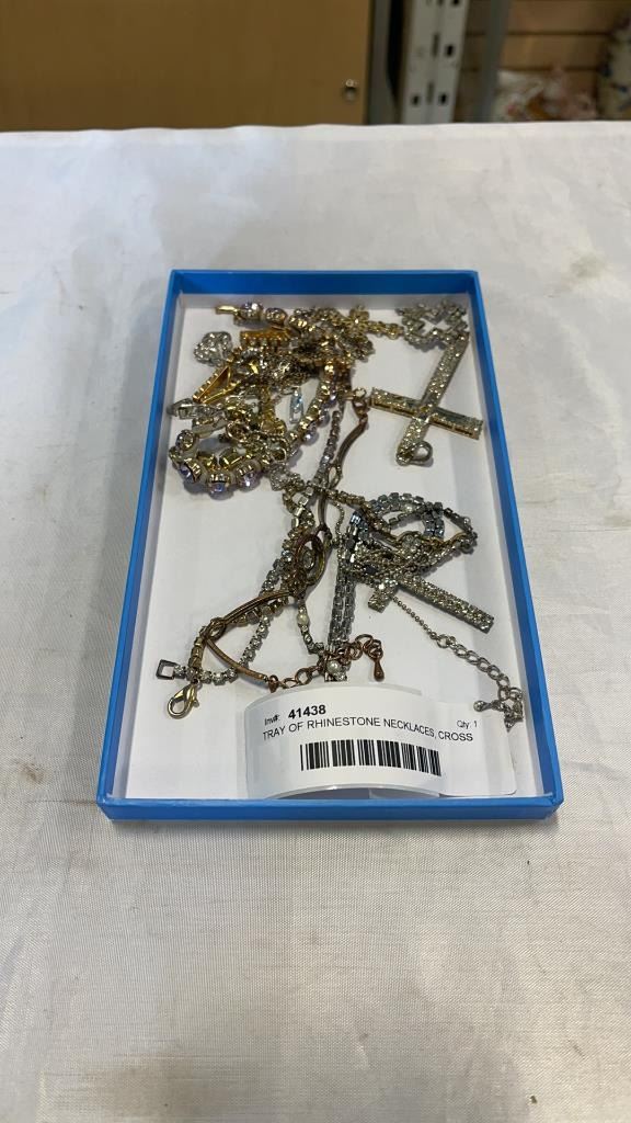 TRAY OF RHINESTONE NECKLACES, CROSS PENDANTS