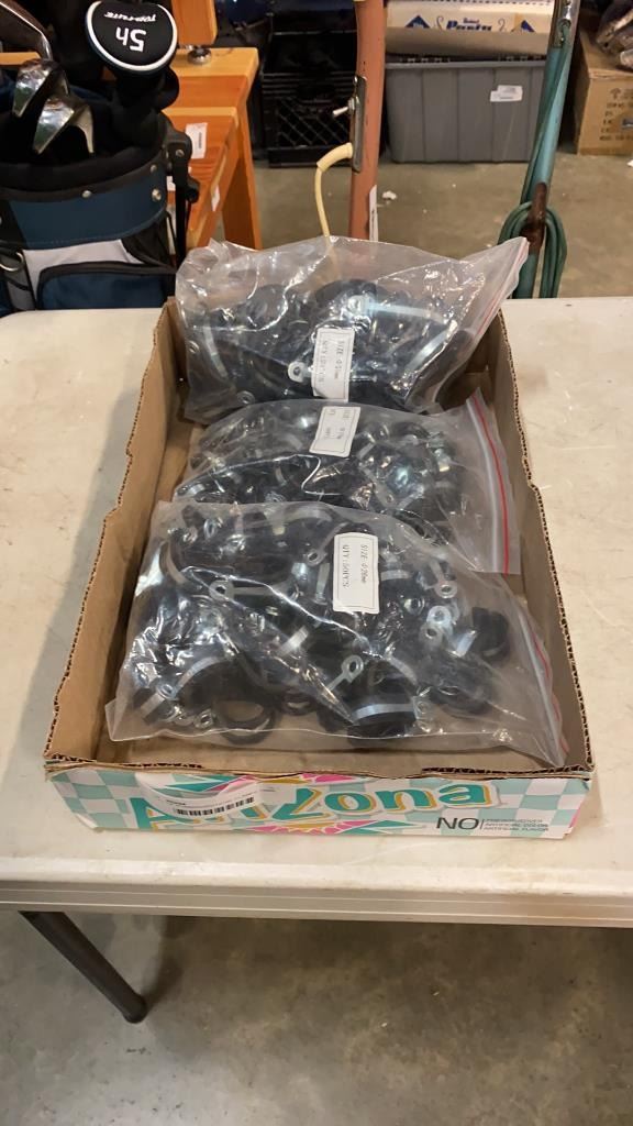 TRAY OF RUBBERIZED HOSE CLAMPS 19MM, 26MM AND 51MM