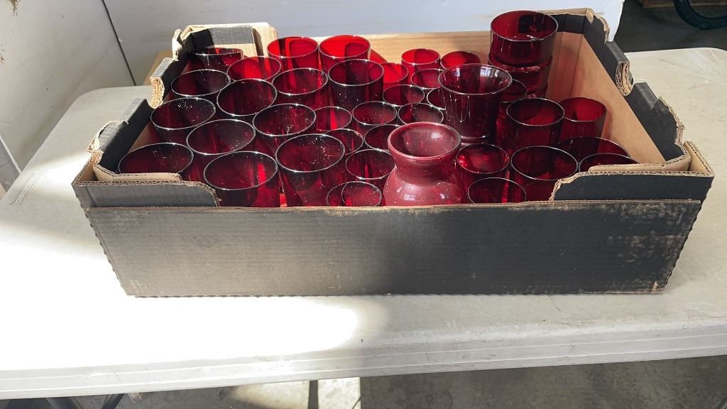 TRAY OF RUBY GLASS CUPS