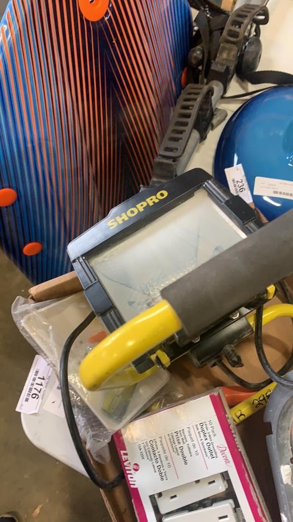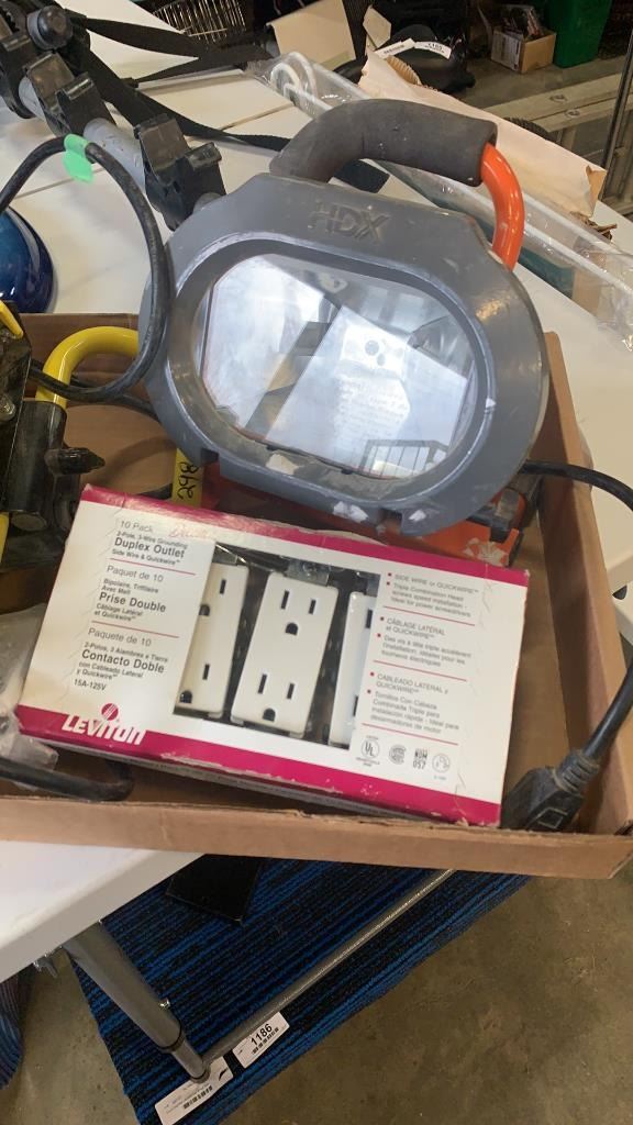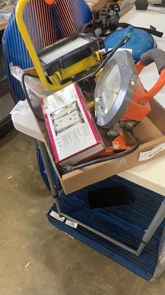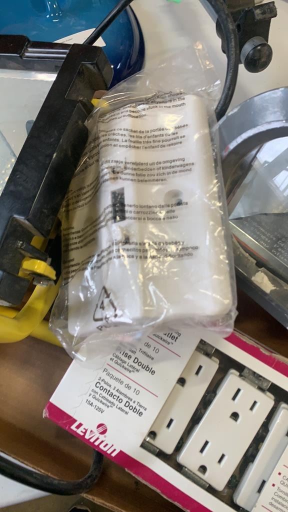 TRAY OF SHOP LIGHTS, POWER OUTLETS