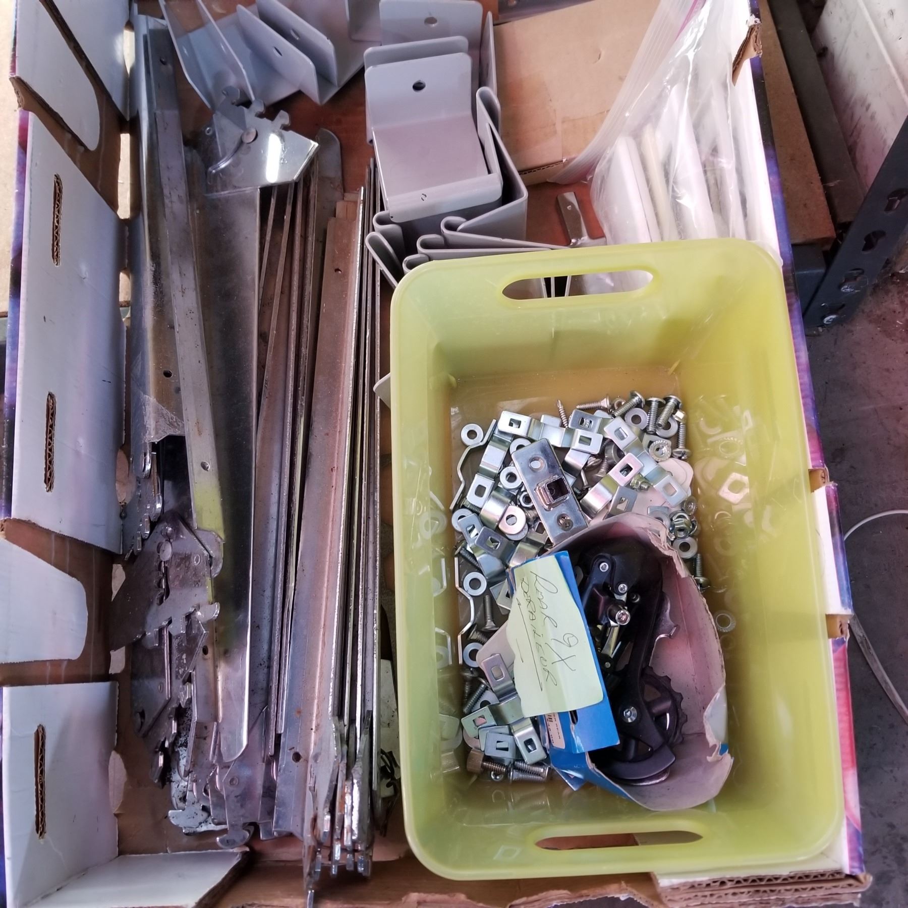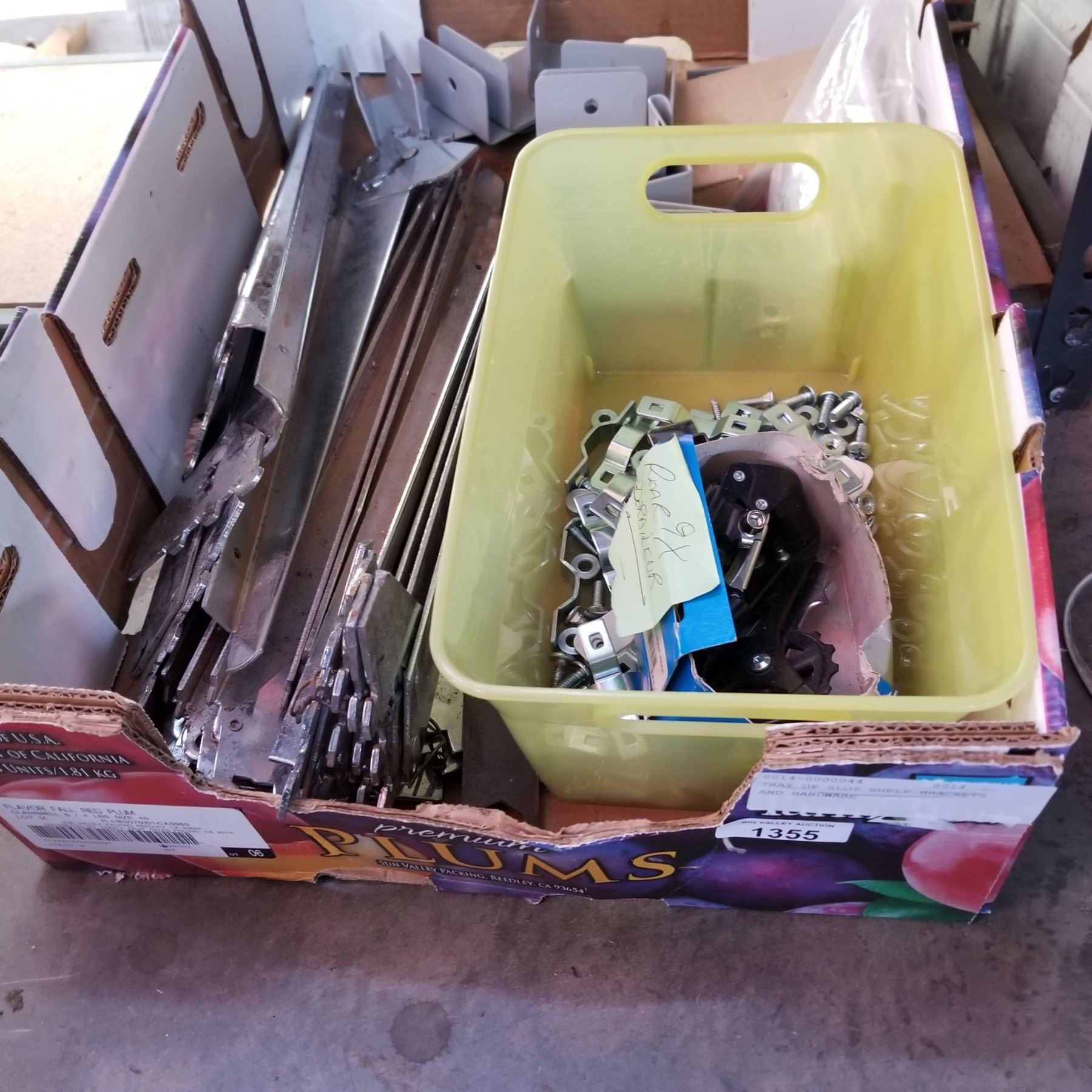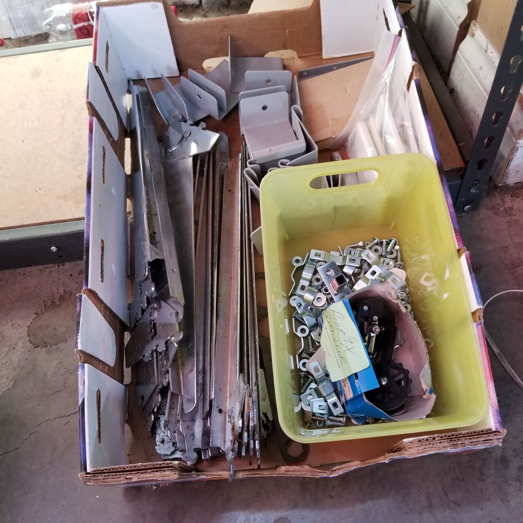 TRAY OF SLOT SHELF BRACKETS AND HARDWARE